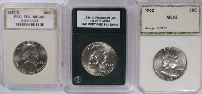 (3) SLABBED FRANKLIN HALF DOLLARS (59-D, 62, 63-D)