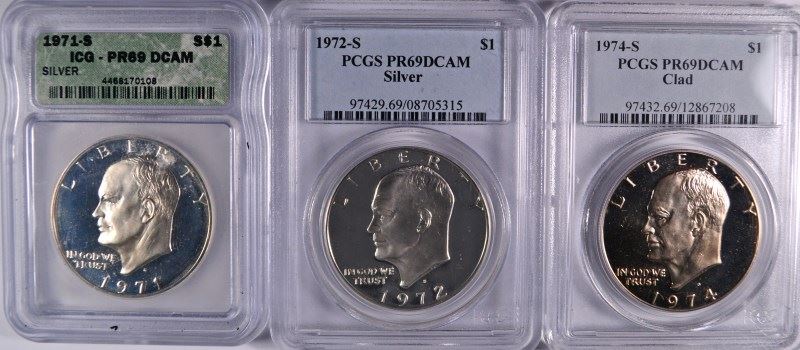 (3) SLABBED PROOF IKE DOLLARS (71-S, 72-S, 74-S)