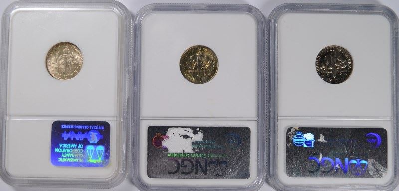 (3) SLABBED ROOSEVELT DIMES (61-D, 66 SMS, 77) NGC GRADED !!!