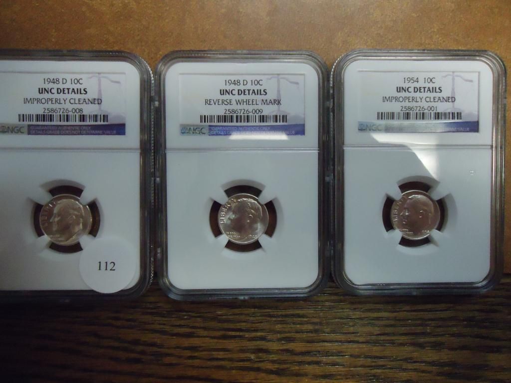 ALL NGC 1948-D (UNC) DETAILS IMPROPERLY CLEANED, 1948-D (UNC) REV. WHEEL MARKS AND 1954 (UNC) DETAILS IMPROPERLY CLEANED