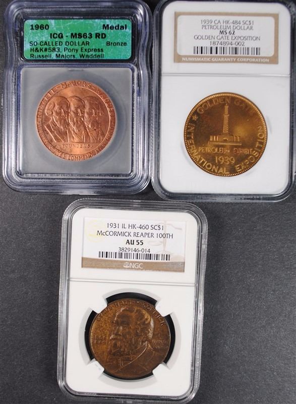 3 - SO CALLED DOLLARS; '31 McCORMICK REAPER NGC AU55, 60 PONY EXPRESS ICG MS63RD