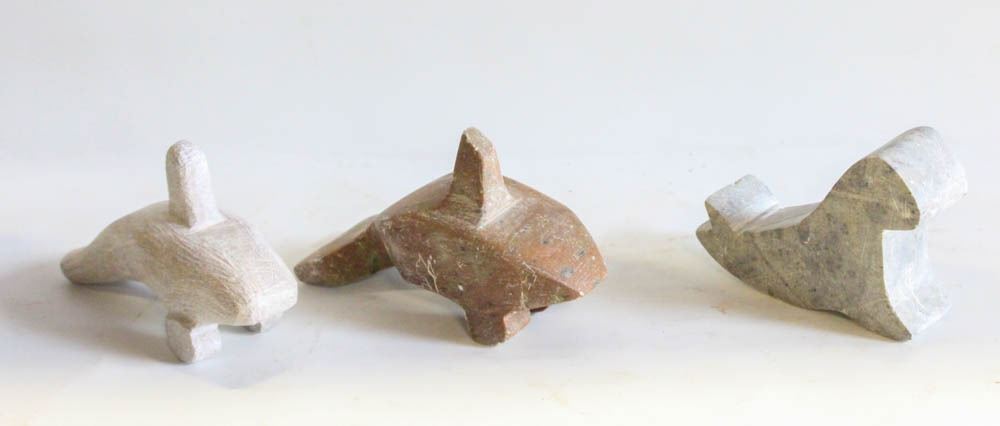 3 SOAPSTONE CARVINGS; 2 ORCAS & 1 SEAL