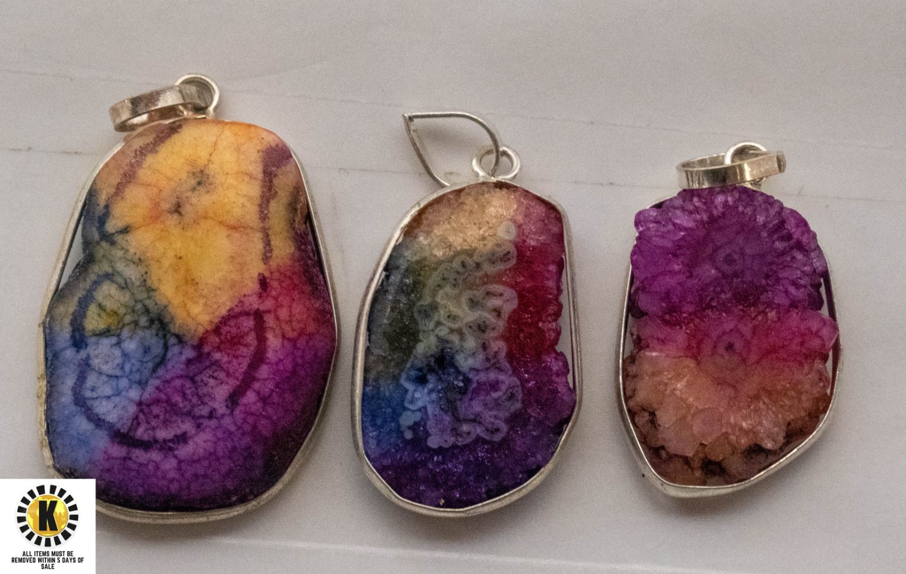 3 SOLAR QUARZ DRUZY GEMSTONE 925 SILVER