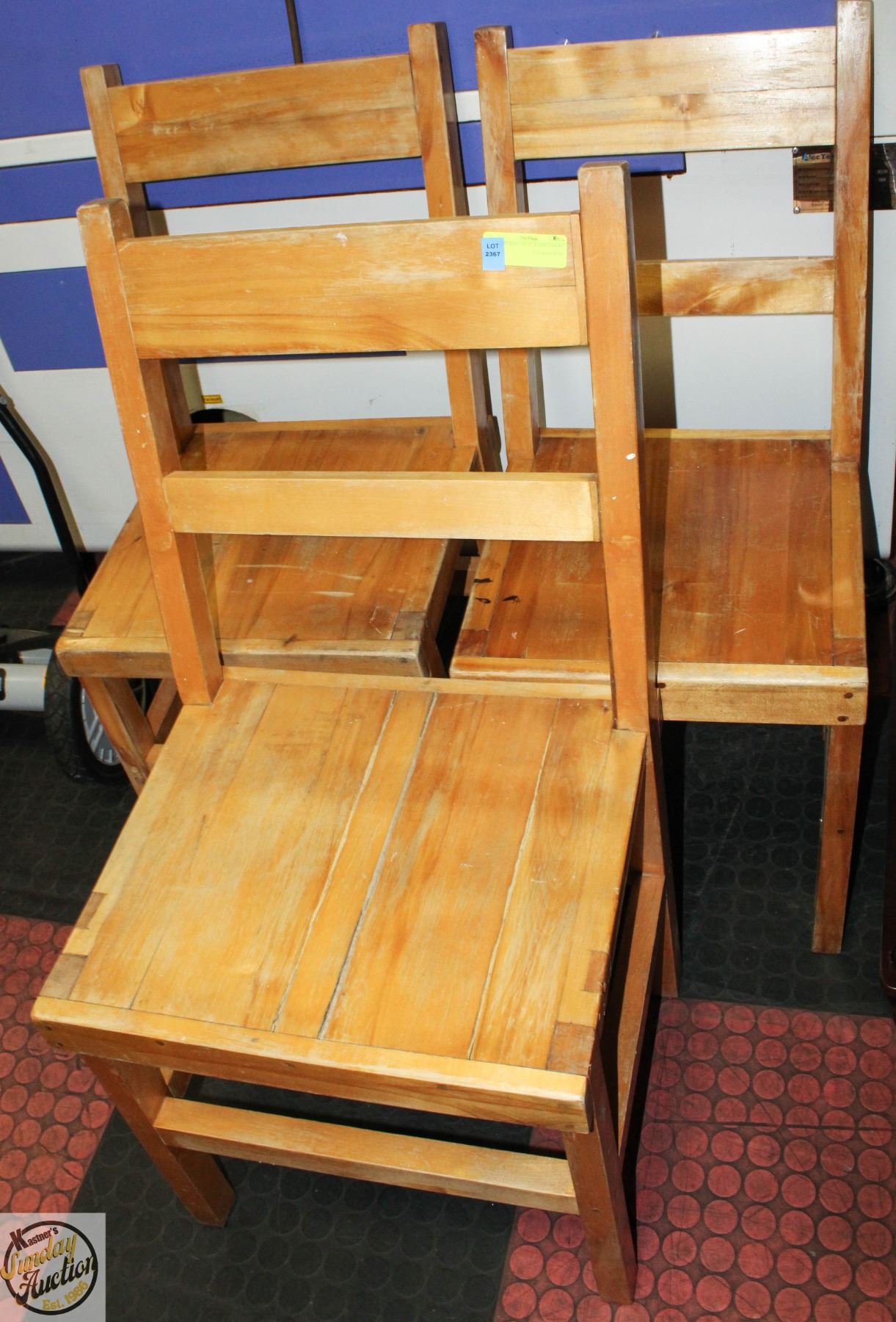 3 SOLID WIDE SEAT WOOD CHAIRS