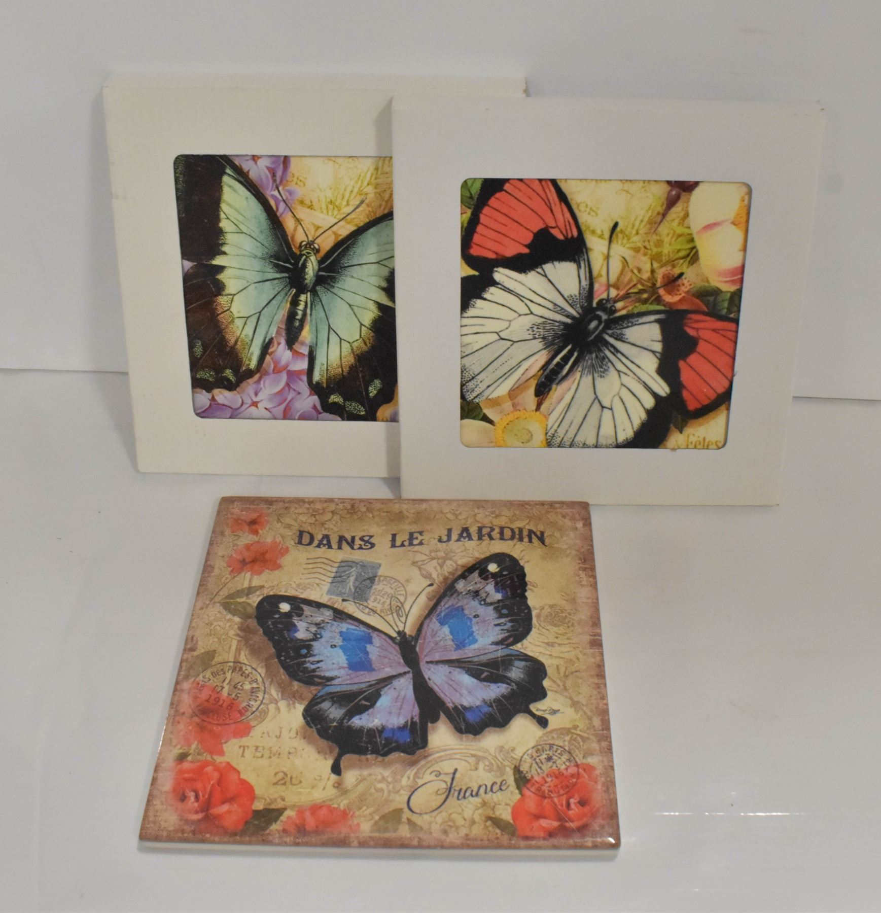 3 SQUARE CERAMIC KITCHEN TRIVET,BUTTERFLY