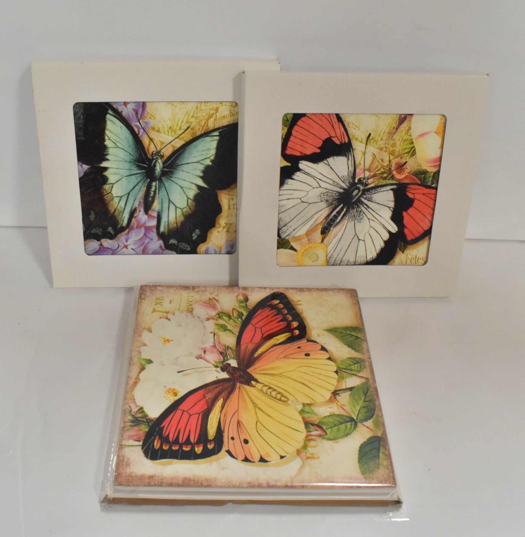 3 SQUARE CERAMIC KITCHEN TRIVET,BUTTERFLY