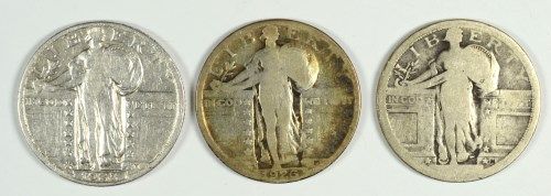 3 STANDING LIBERTY QUARTERS (17-S T1,26-S,28-D) AG-FINE