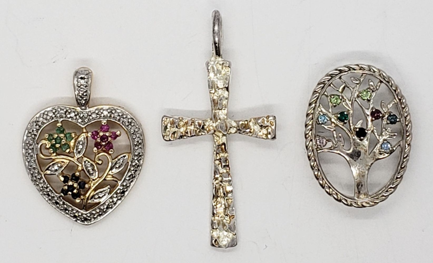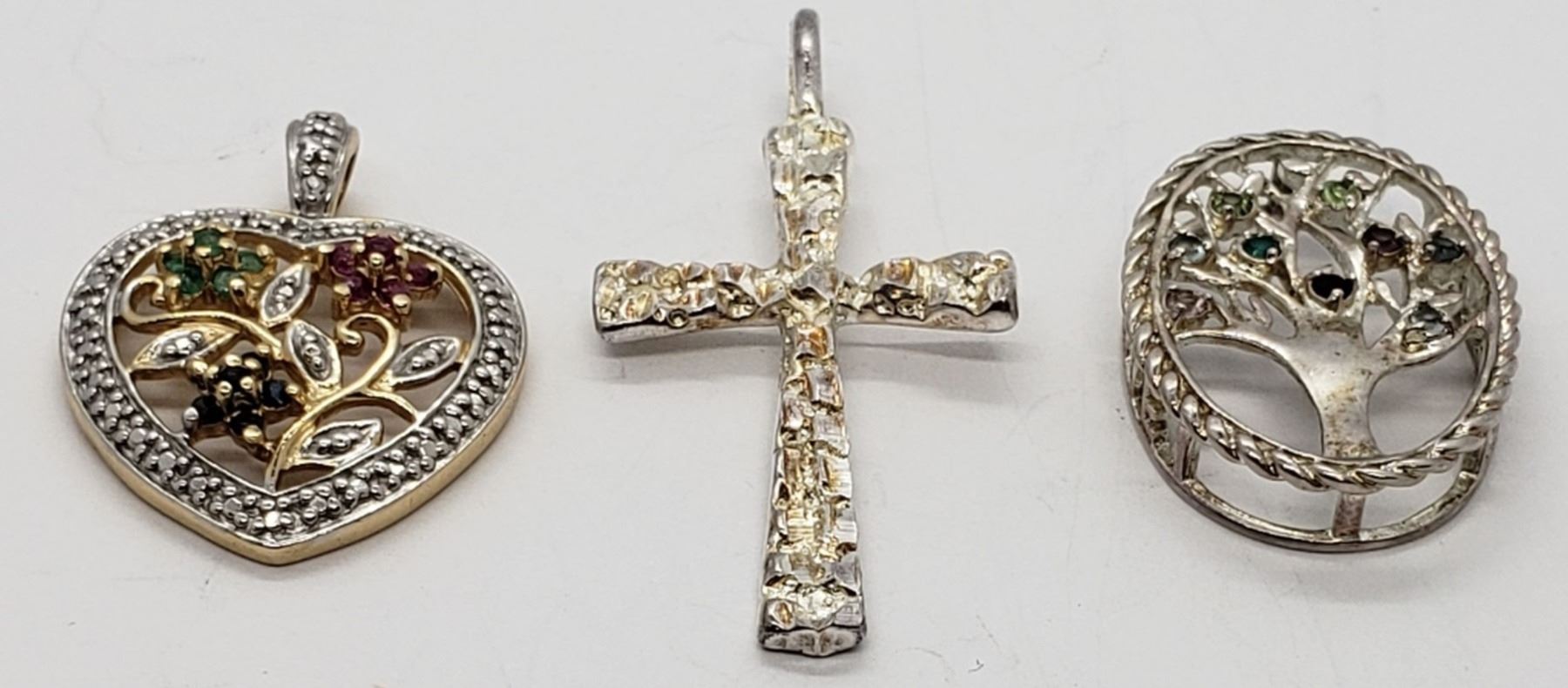 GREEN, BLUE, & RED RUBY COLORED STONES-(1)TREE OF LIFE. TOTAL 5.5 DWT