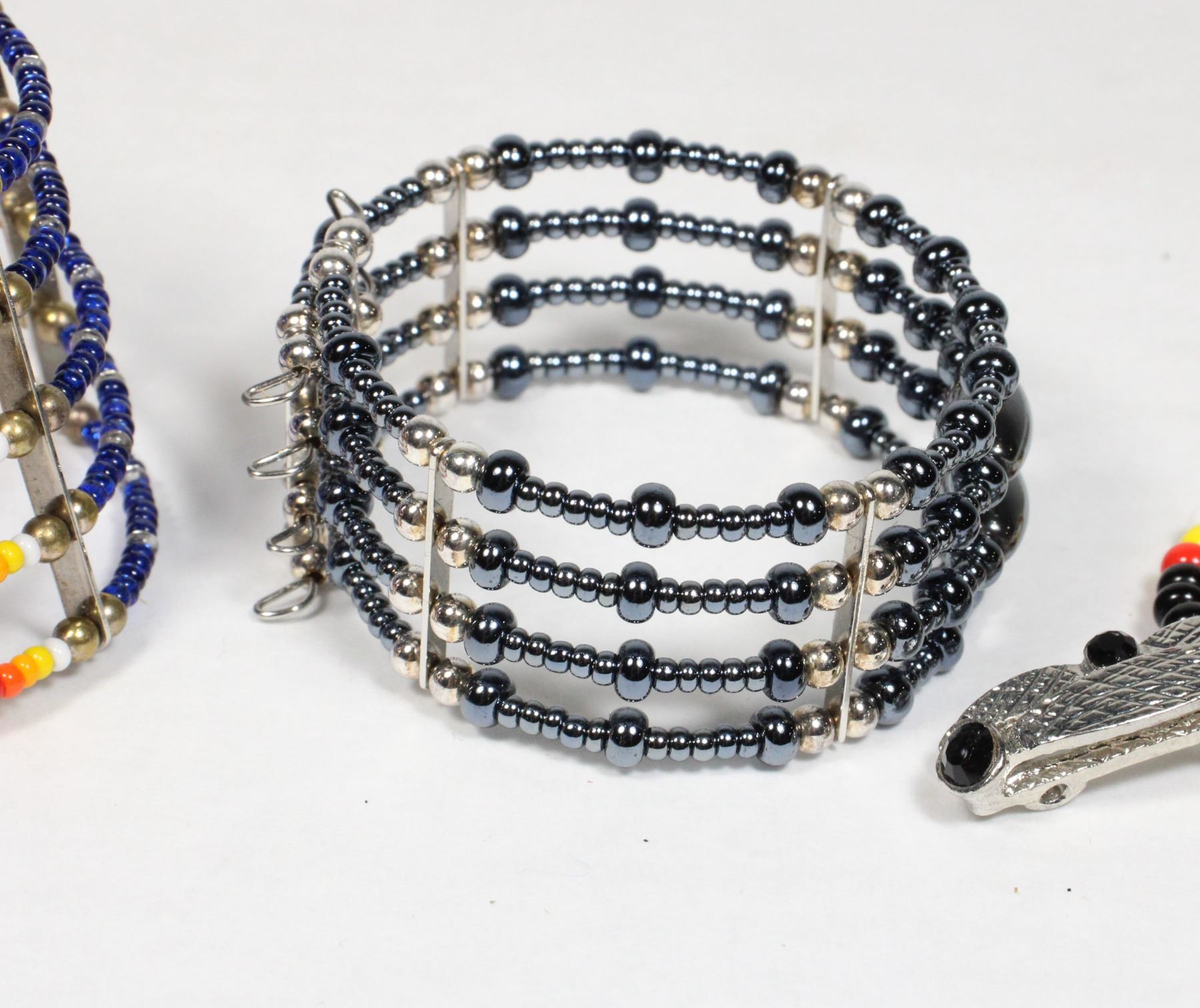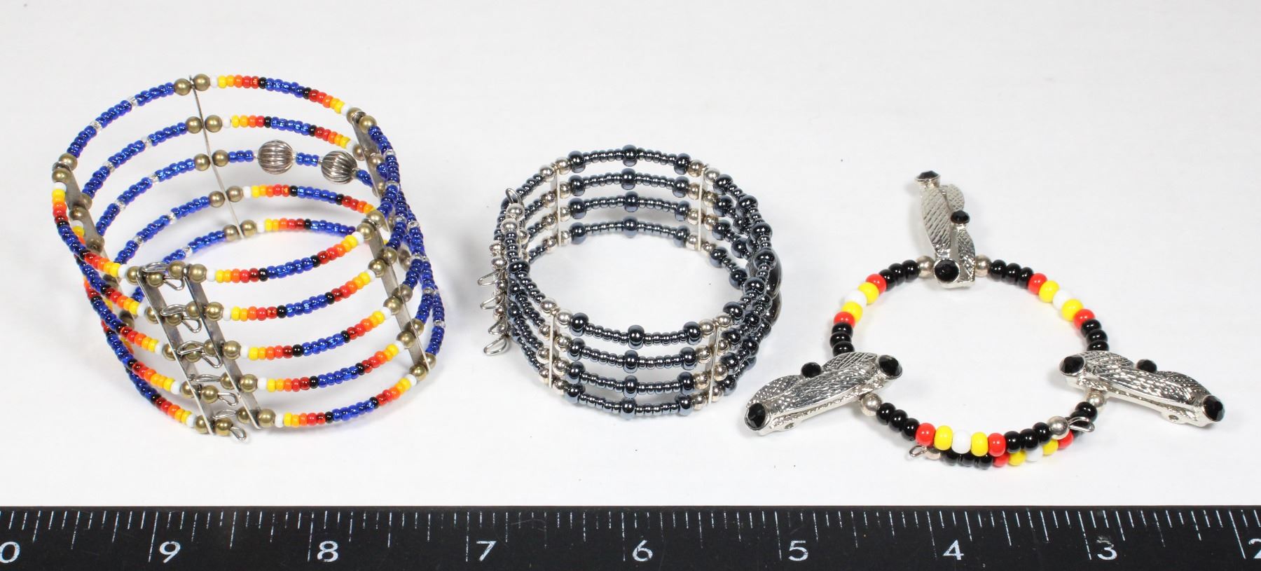 3 STRETCH METAL SEED BEADED OPEN CUFF BRACELETS