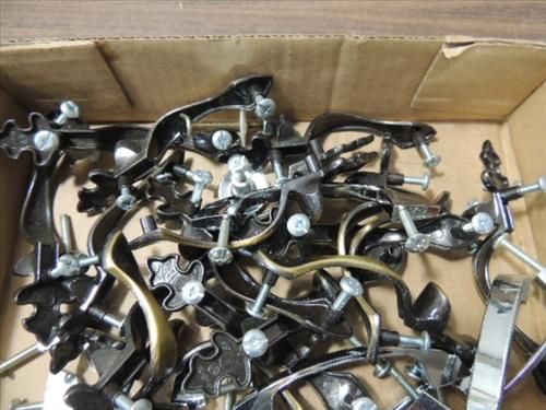 50+ 3 STYLES (2) CHROME, 1 ANTIQUE BRONZE METAL DRAWER HANDLE HARDWARE. AS SHOWN. VIEW PICTURE FOR DETAIL.