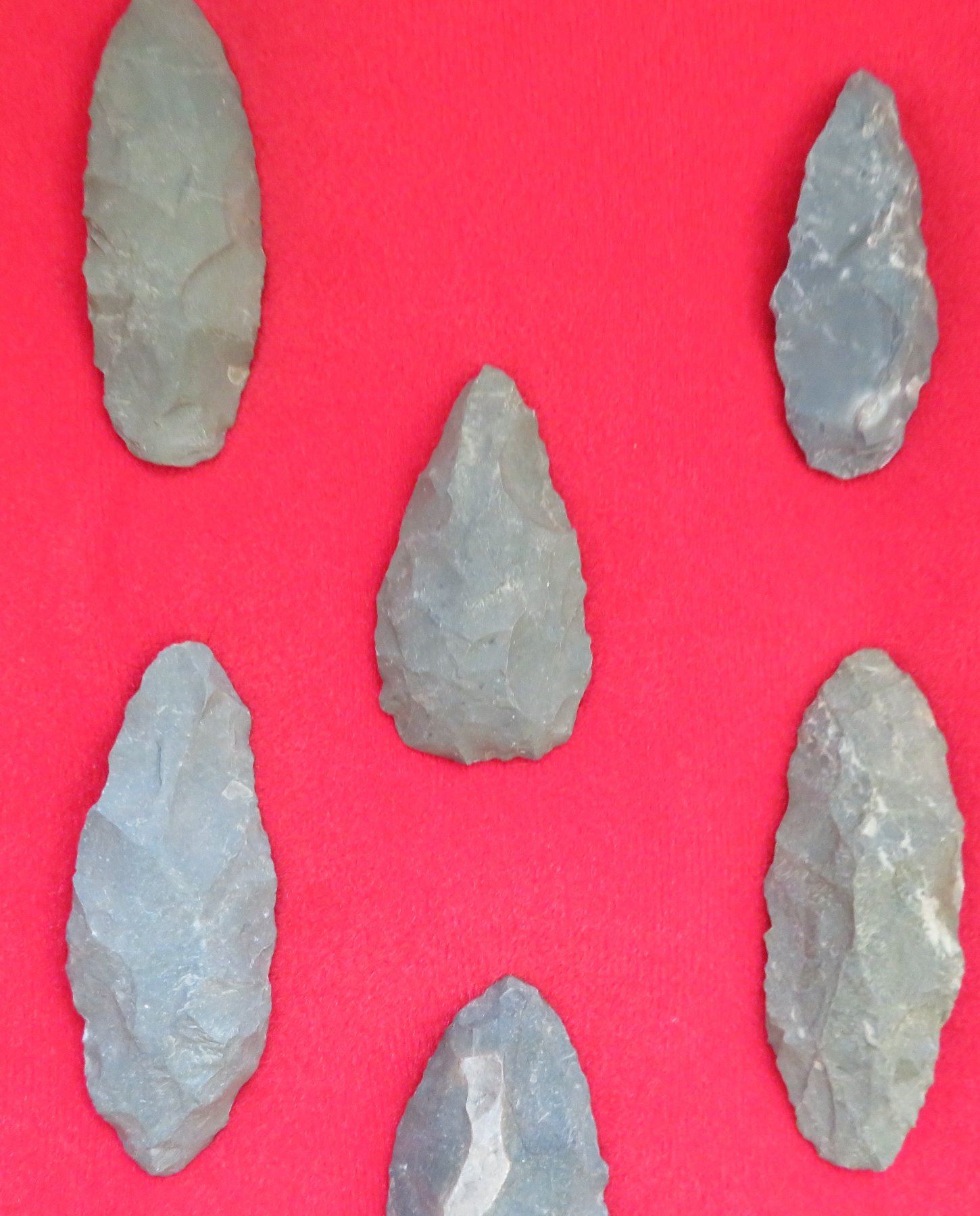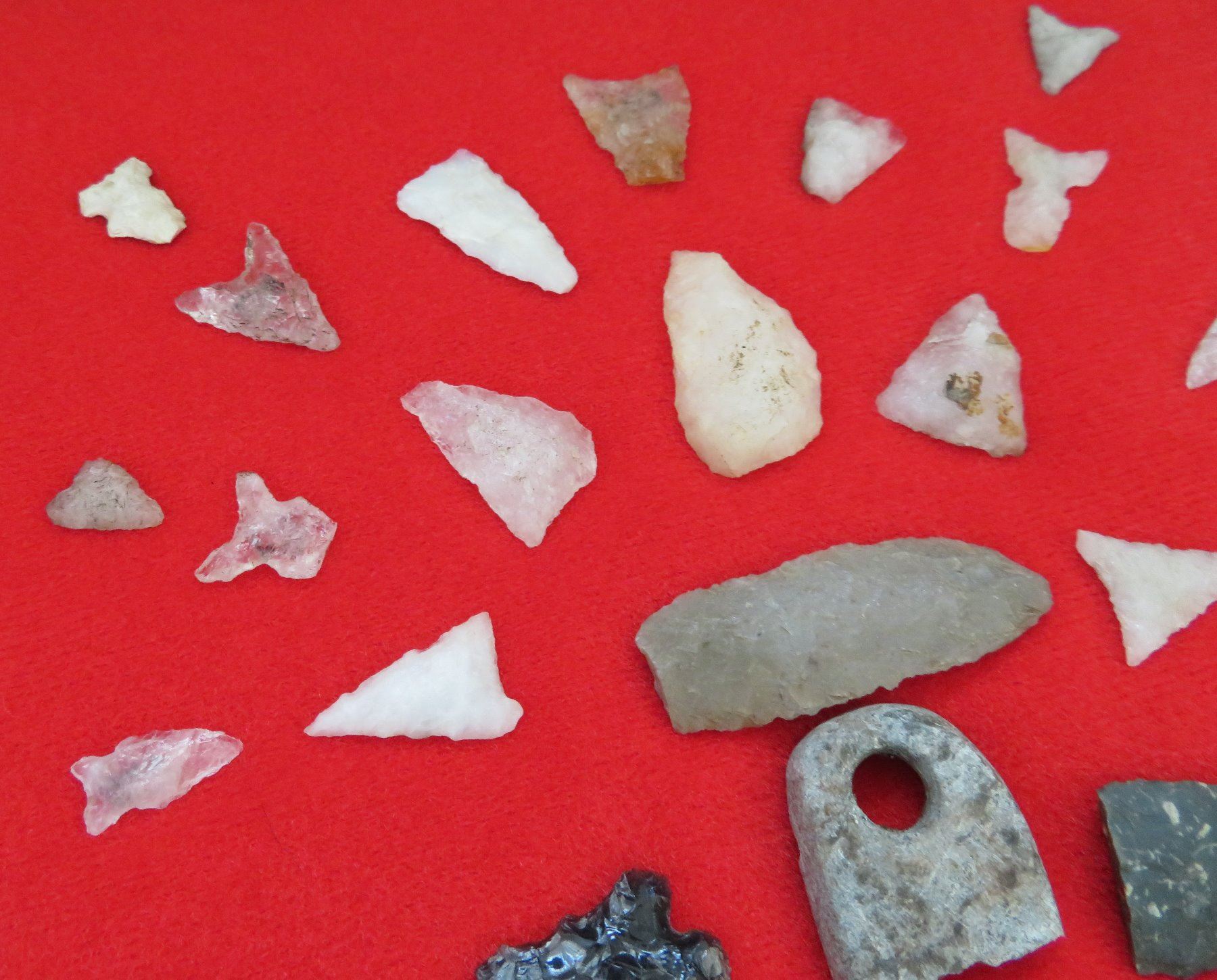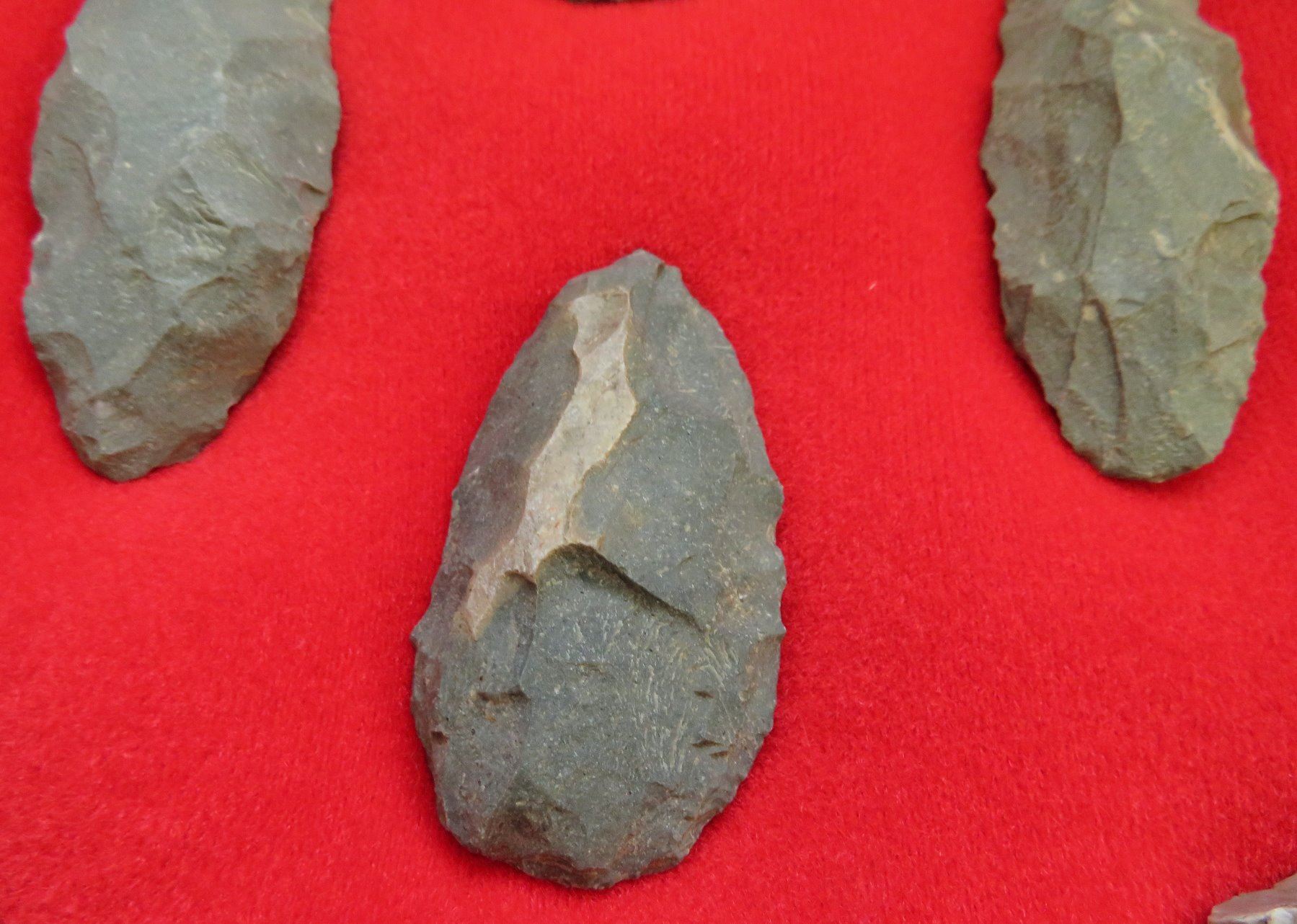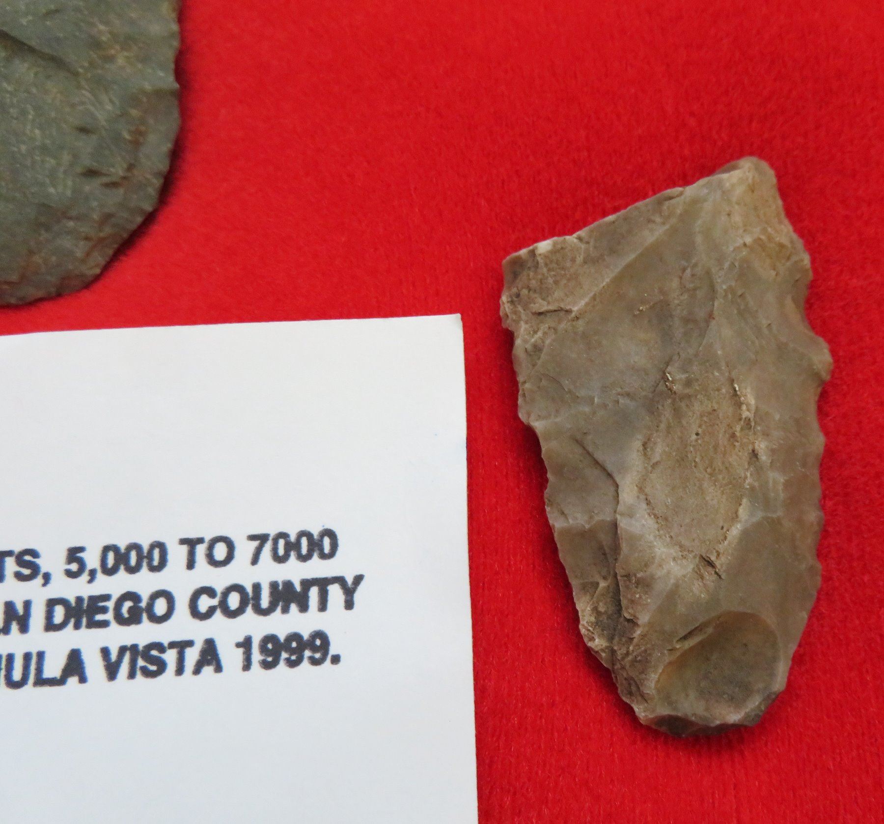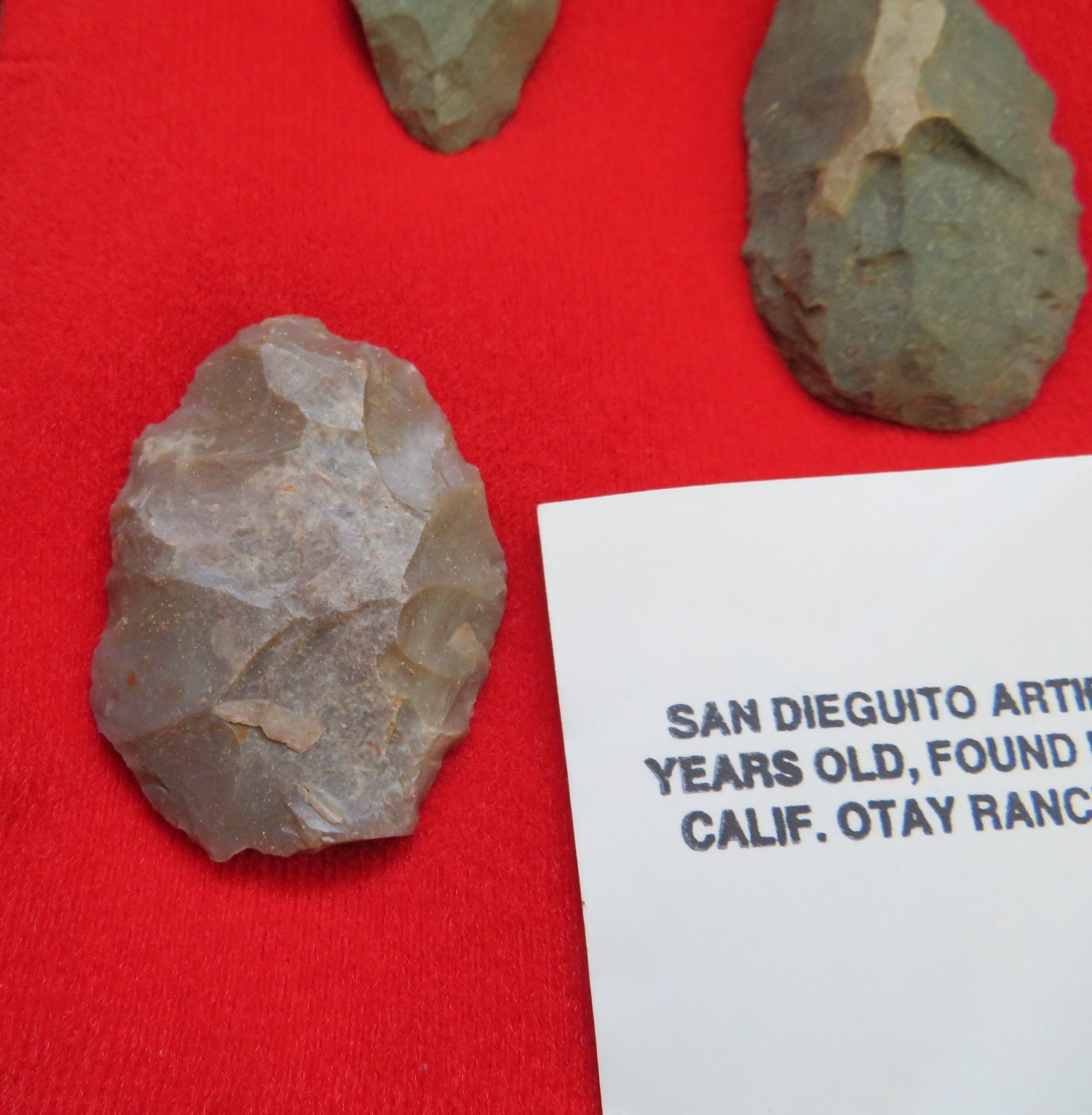 3 San Diego Artifact Collections, paleo to historic period. Made of felsite, quartz, and chert, the largest item measures 9 1/2". San Diego County, California. Frames not included. Condition: As found, see images. Shipping: $45.00 w/insurance and signature, due to value and weight.