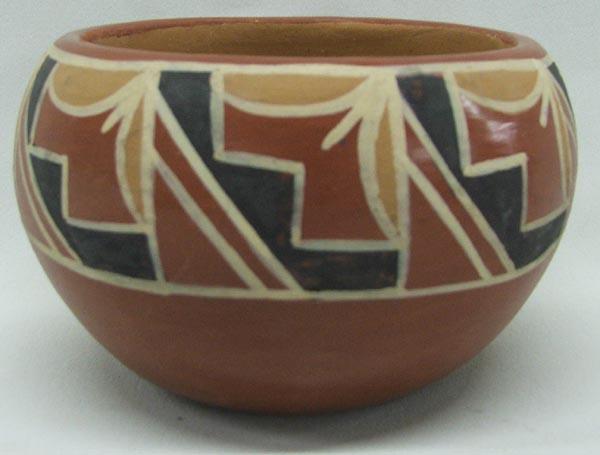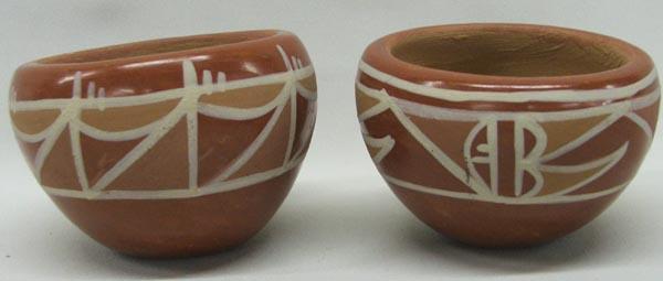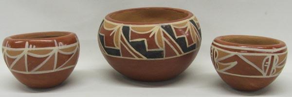 3 Polychrome Santa Clara Bowls Hallmark. Largest bowl has hallmark on bottom, 2 bowls signed Sisneros. Largest measures approx. 2 3/4''H x 4''W. SHI $30.