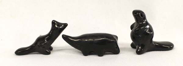 3 Santa Clara Miniature Pottery Animals by Dorothy and Paul Gutierrez (1940-2017), includes a beaver (signed), a roadrunner, and a fox, largest measures 2''L, FYI: ''Paul ''White Corn'' and Dorothy ''Corn Maiden'' Gutierrez were both born in 1940. Paul was born into the Santa Clara-Tewa Pueblo and later married Dorothy of the Navajo Nation.''