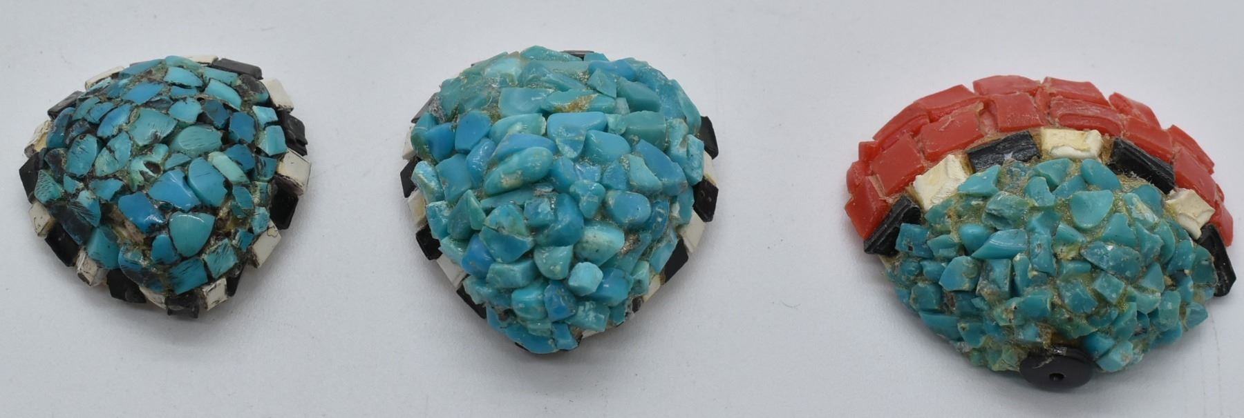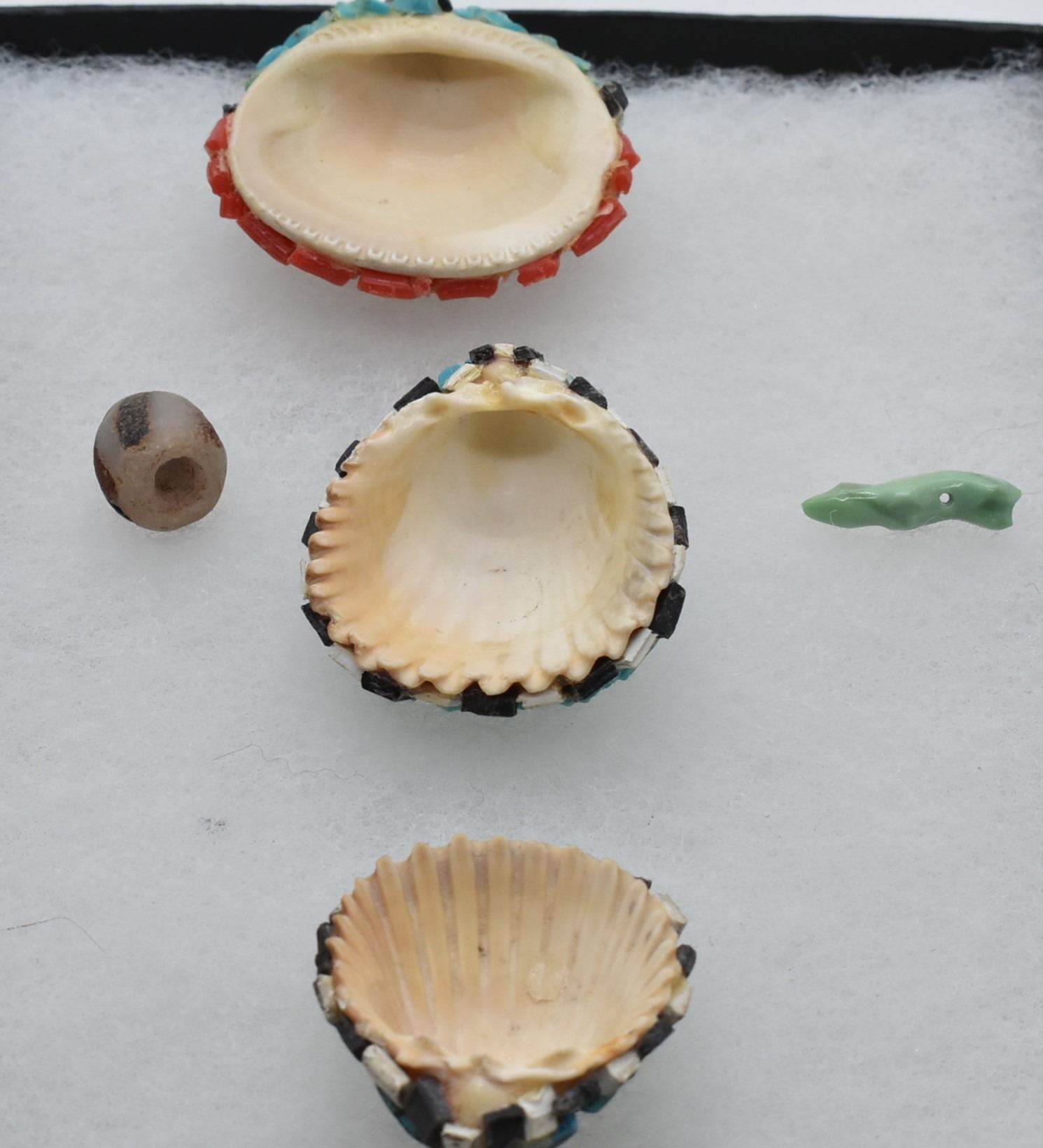 3 Santo Domingo Inlay Shells, 1 Zuni Bead, 1 Bead