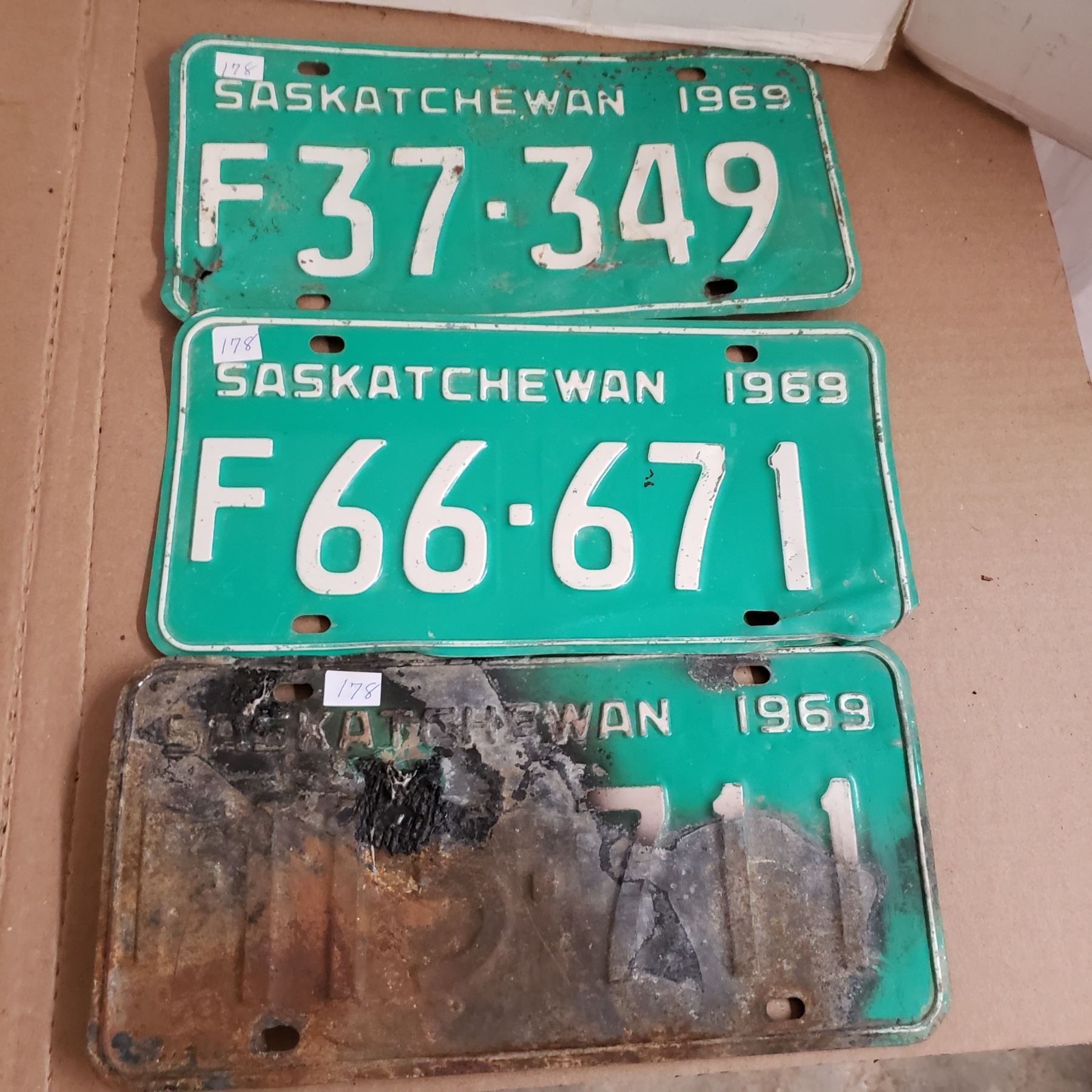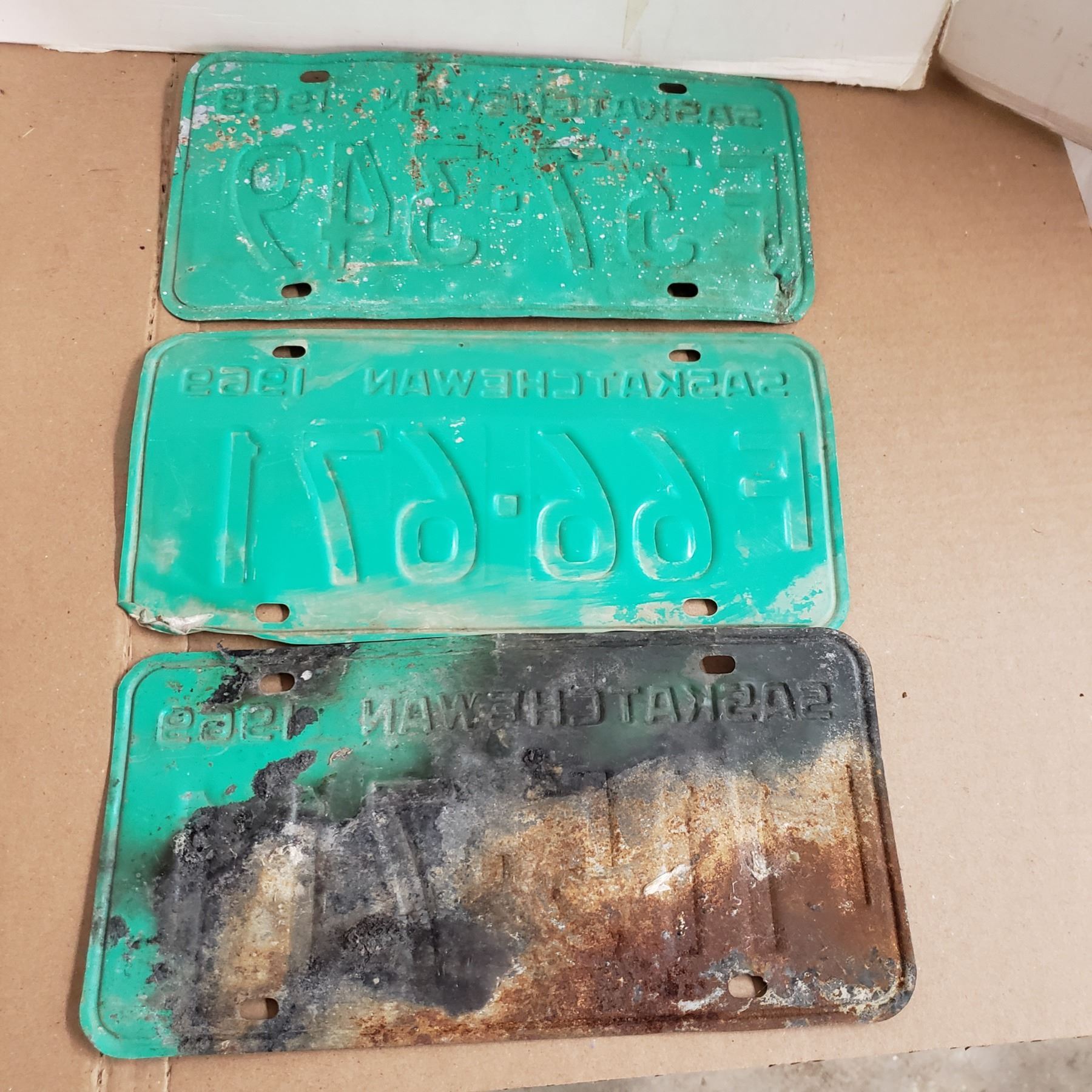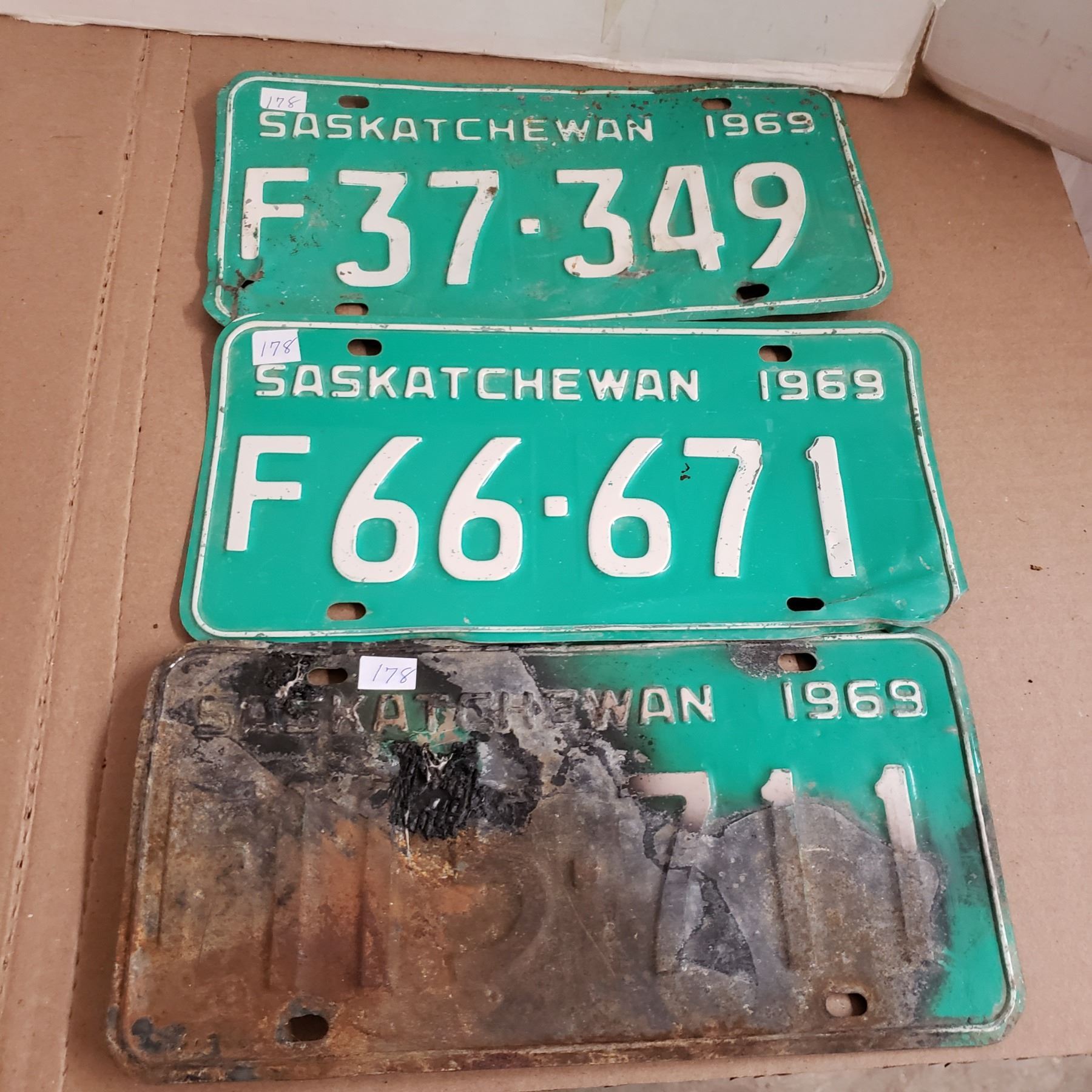 3 Saskatchewan License Plate 1969 F plates