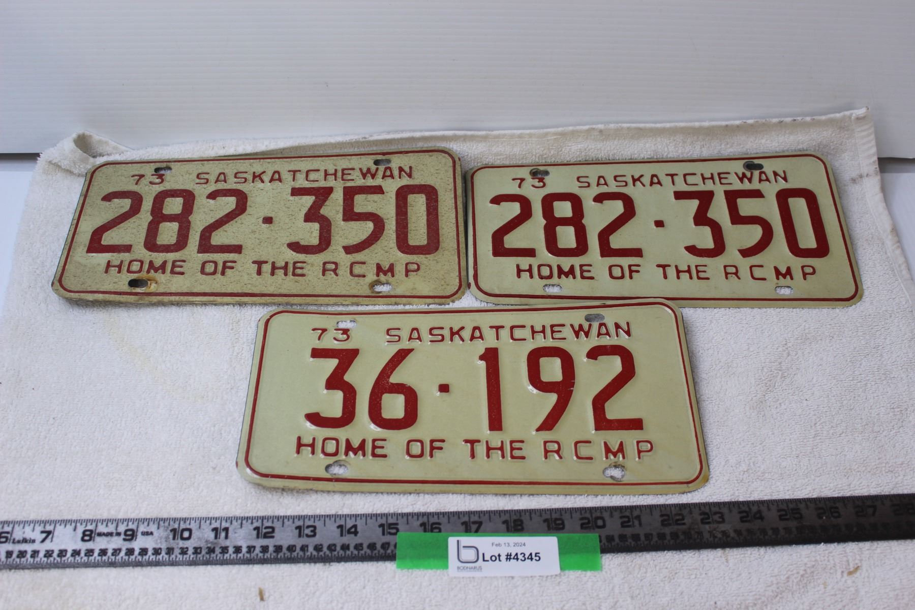 (3) Saskatchewan License Plates RCMP Edition 1973