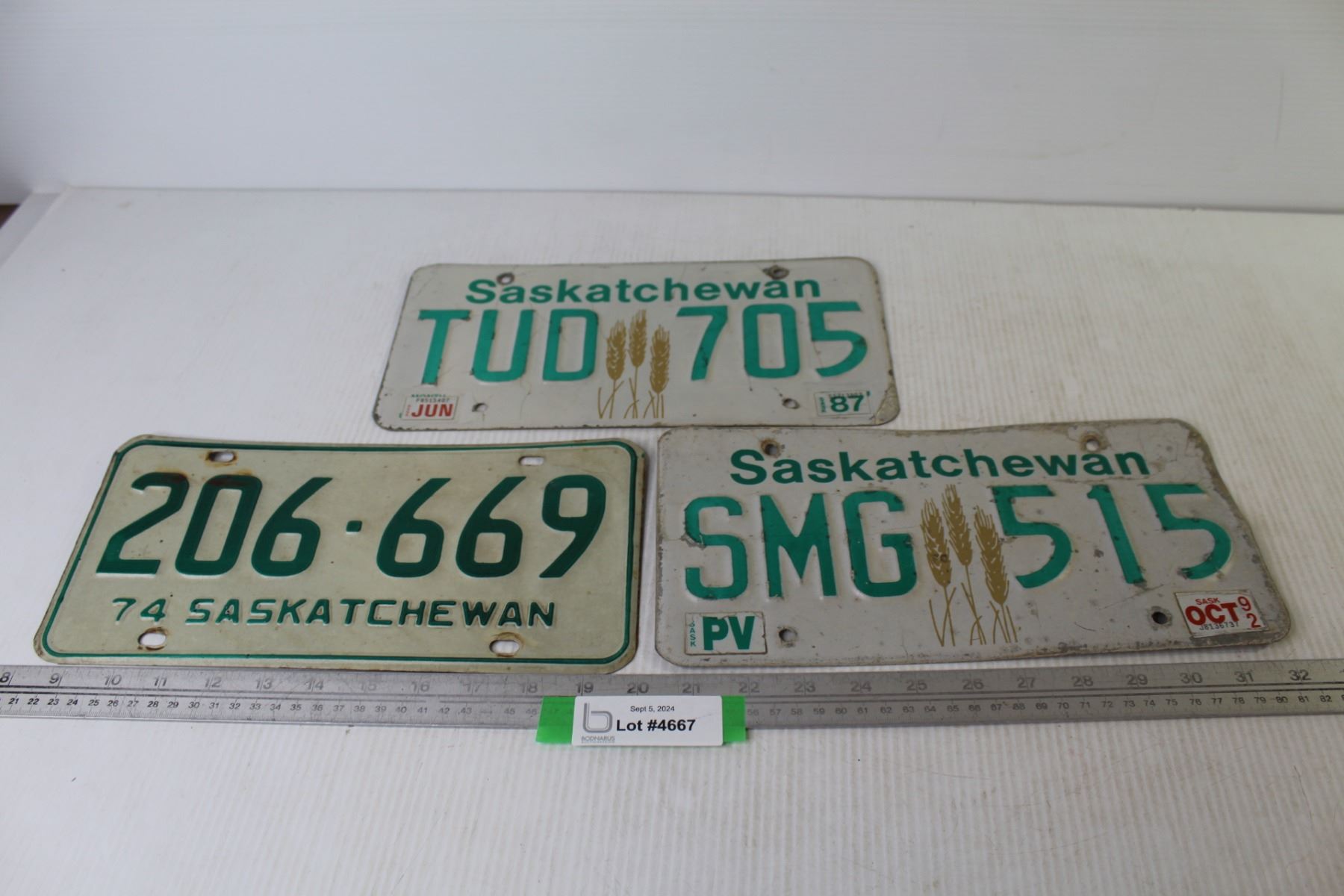 (3) Saskatchewan License Plates (one is 1973)