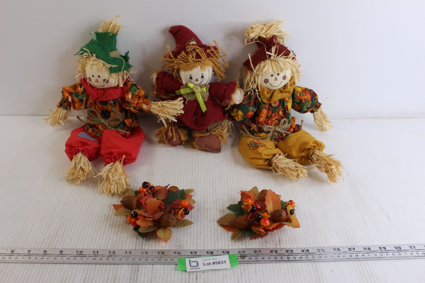 (3) Scarecrow Decorations, (2) Table Centrepieces