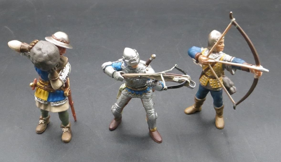 3 Schleich Fighter Figures Archer, Foot Solider With Stone & Fighter With Crossbow