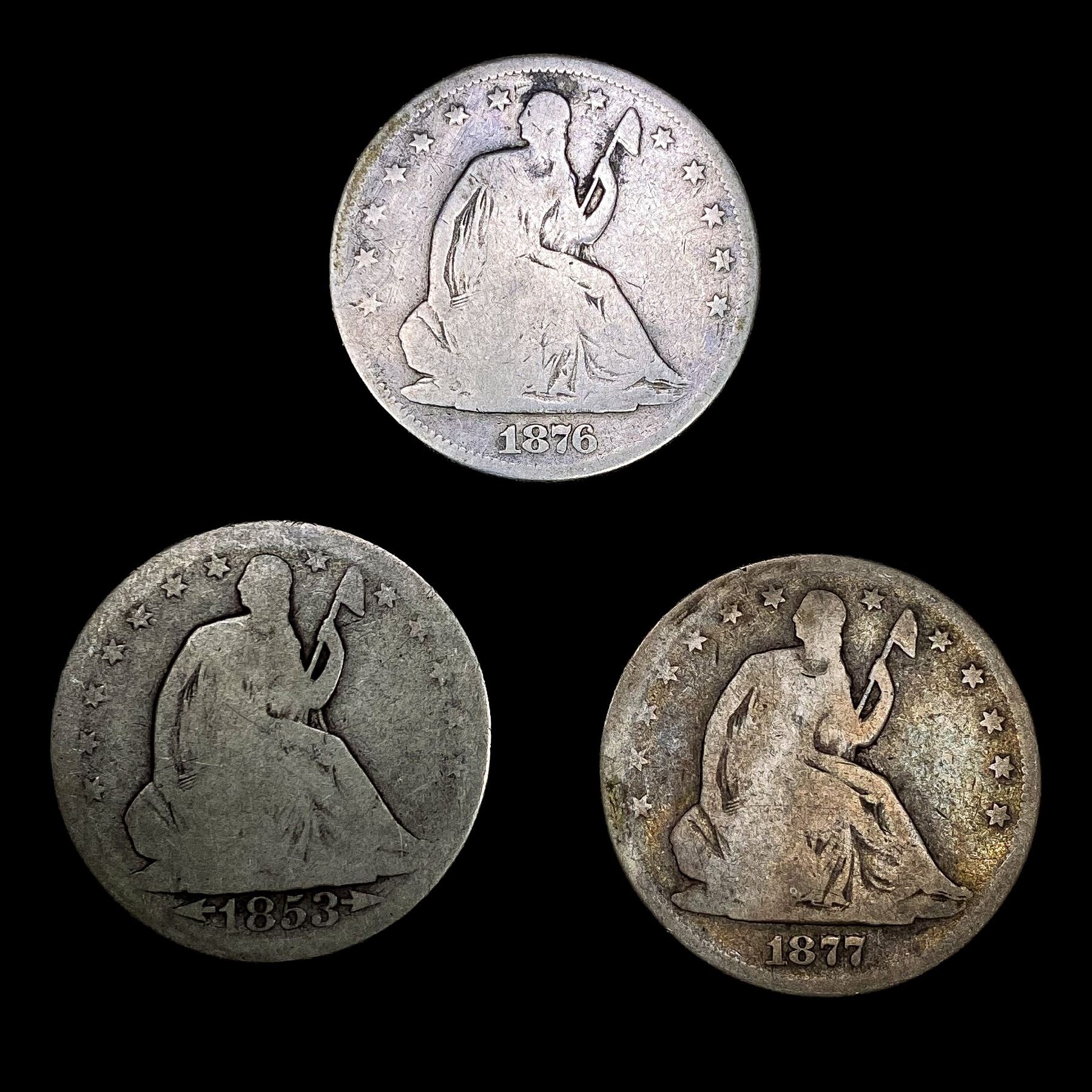[3] Seated Lib Half Dollars [1853, 1876-S, 1877-S]