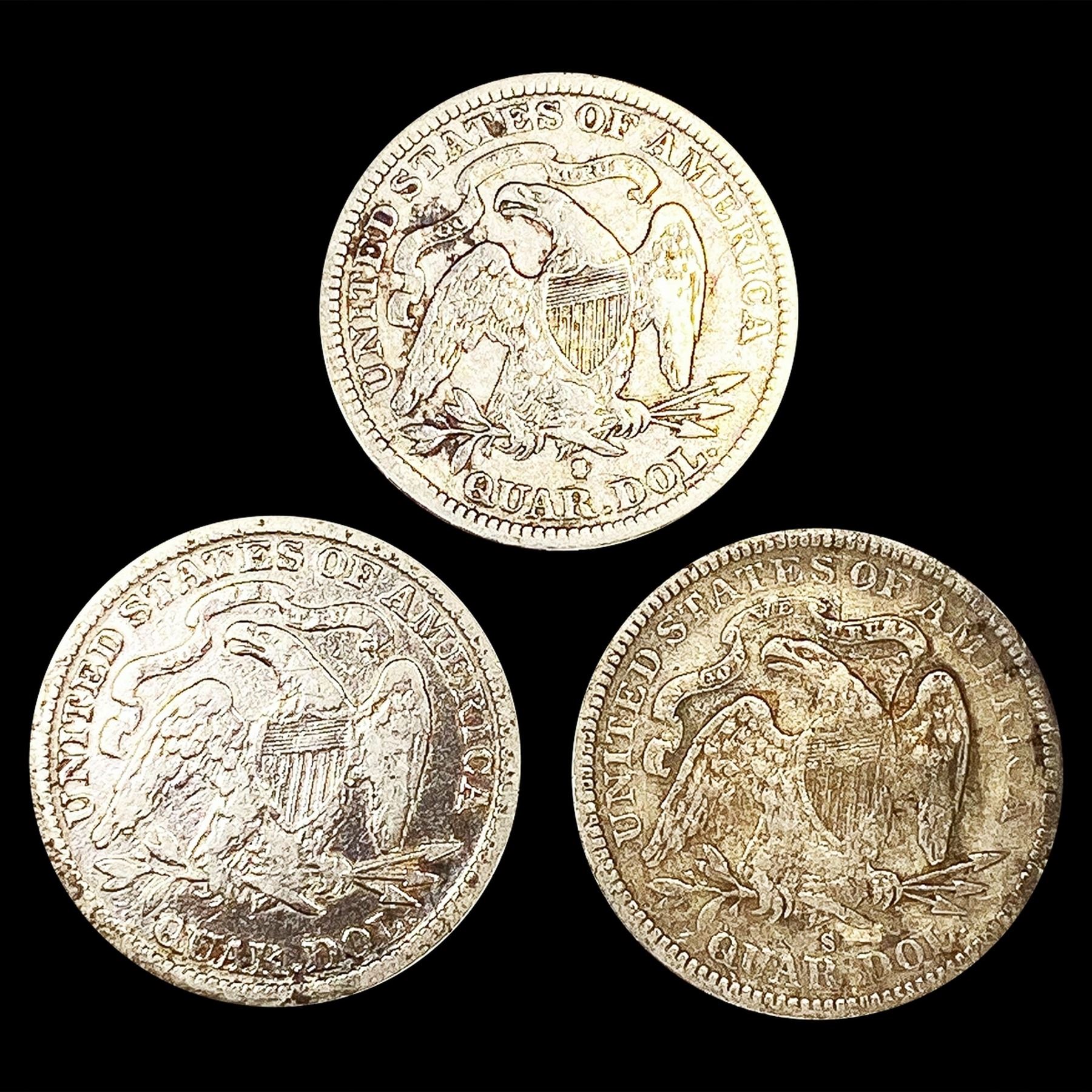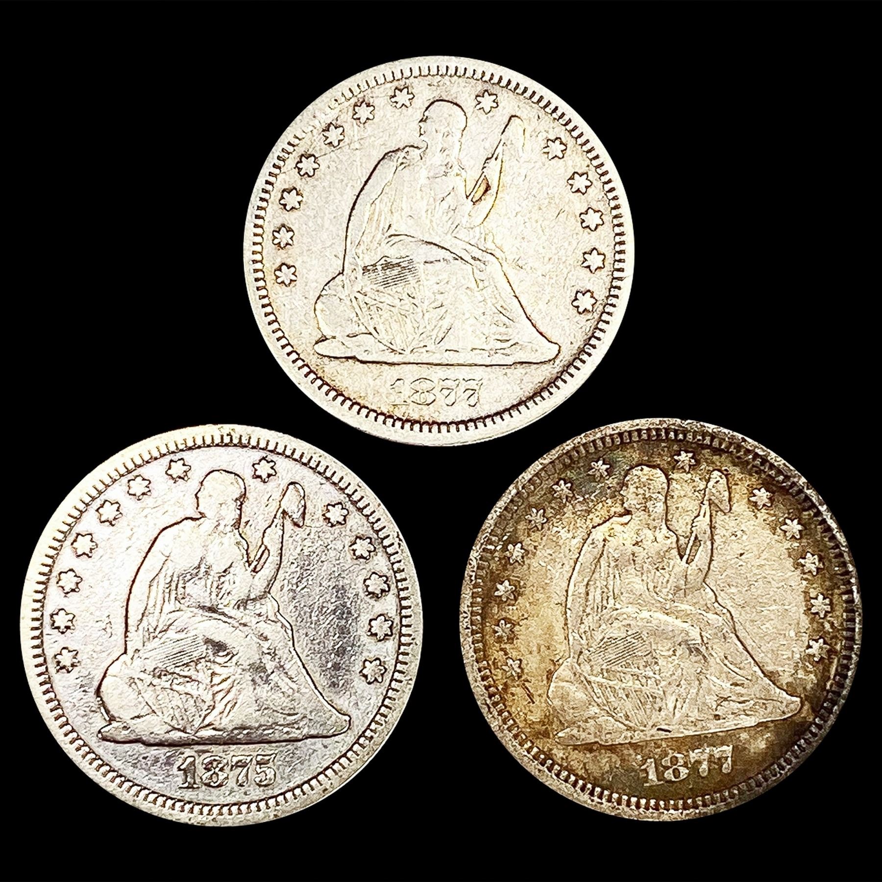(3) Seated Liberty Quarters (1875, (2) 1877-S) NI