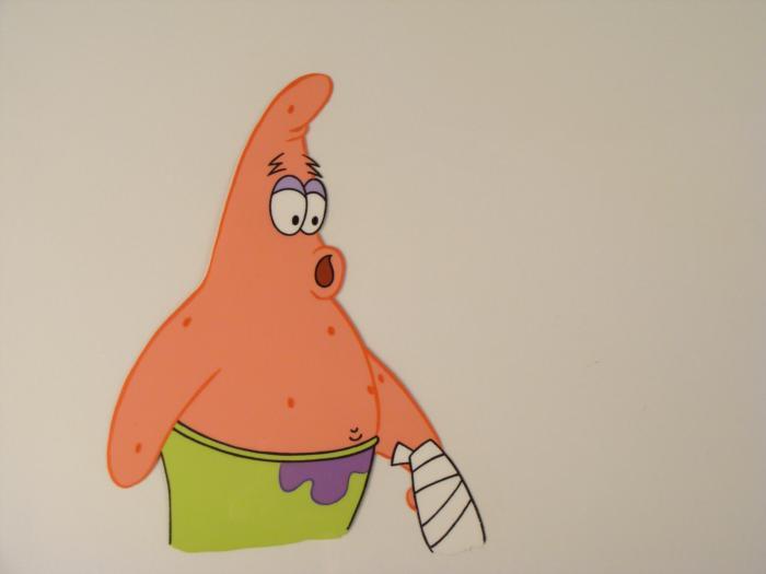 This original animation cel is from the Nickelodeon TV show SpongeBob Squarepants. The story takes place under the deep blue sea in Bikini Bottom, where SpongeBob resides. SpongeBob, who is a yellow, porous sponge, is your typical happy-go-lucky character, as he is always cheerful and enjoys making people laugh. Patrick Star, SpongeBob's neighbor who is a starfish, is your average children's show idiot, as he boasts knowing nothing and is often getting himself into ridiculous situations. Between the homes of these two lies the home of the miserable Squidward, a squid, who is known for being grouchy and playing tricks on SpongeBob and Patrick. Both SpongeBob and Squidward work at the Krusty Krab, a fast food business run by the greedy money-loving Mr. Krabs, a crab, the arch rival of the evil, possibly misunderstood, Plankton. Another neighbor, Sandy Cheeks, an athletic squirrel who normally wears an astronaut's space suit, was introduced in "Tea at the Treedome." She spends most of her time inventing and experimenting. Here are three sequential cels of Patrick. Whistle while you work, Do do doodoo... Have some fun and watch out for your thumb, so whistle while you work...Original Production Animated Cel Overall Size of Cel: 10 1/2" x 12 1/2" Excellent ConditionThis is an original hand-painted cel set-up used in the production of an episode of "SpongeBob SquarePants." Each one-of-a-kind set-up represents a slight change in position of the characters. When individually photographed and projected in rapid succession, the images appear to move.