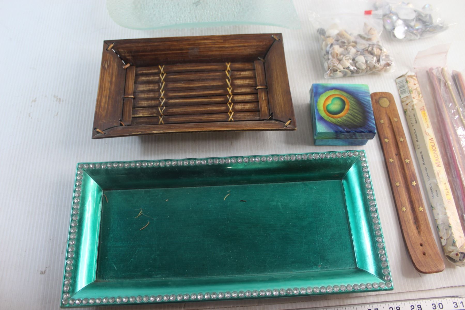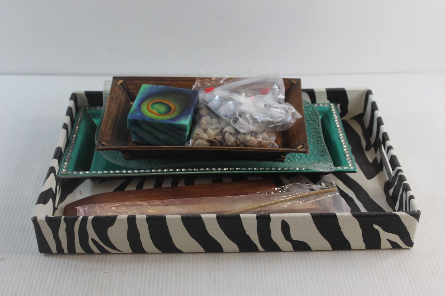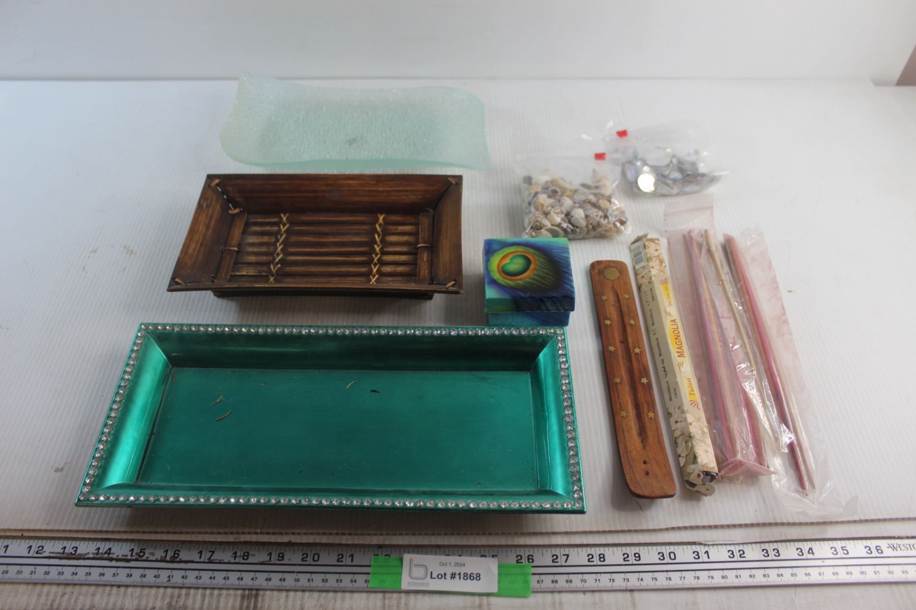(3) Serving Trays, Aroma Sticks, Sea Shells and Assorted Items