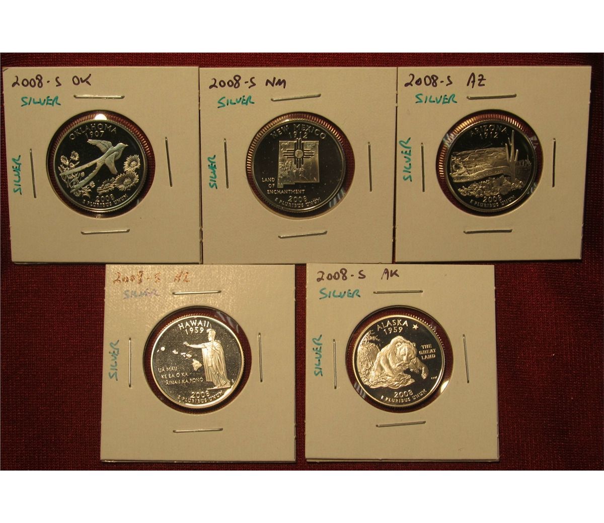 3. Set Of 5 2008-S Proof 90% Silver Statehood Quarters – Ok, Nm, Az, Hi, AK