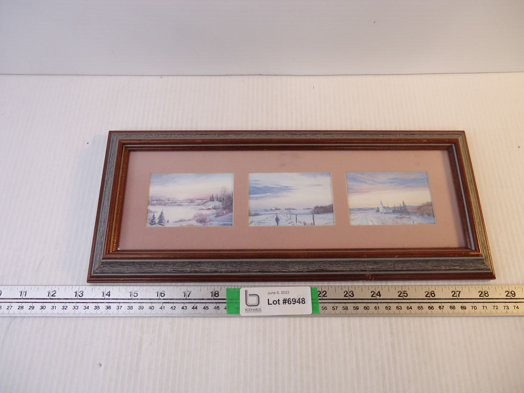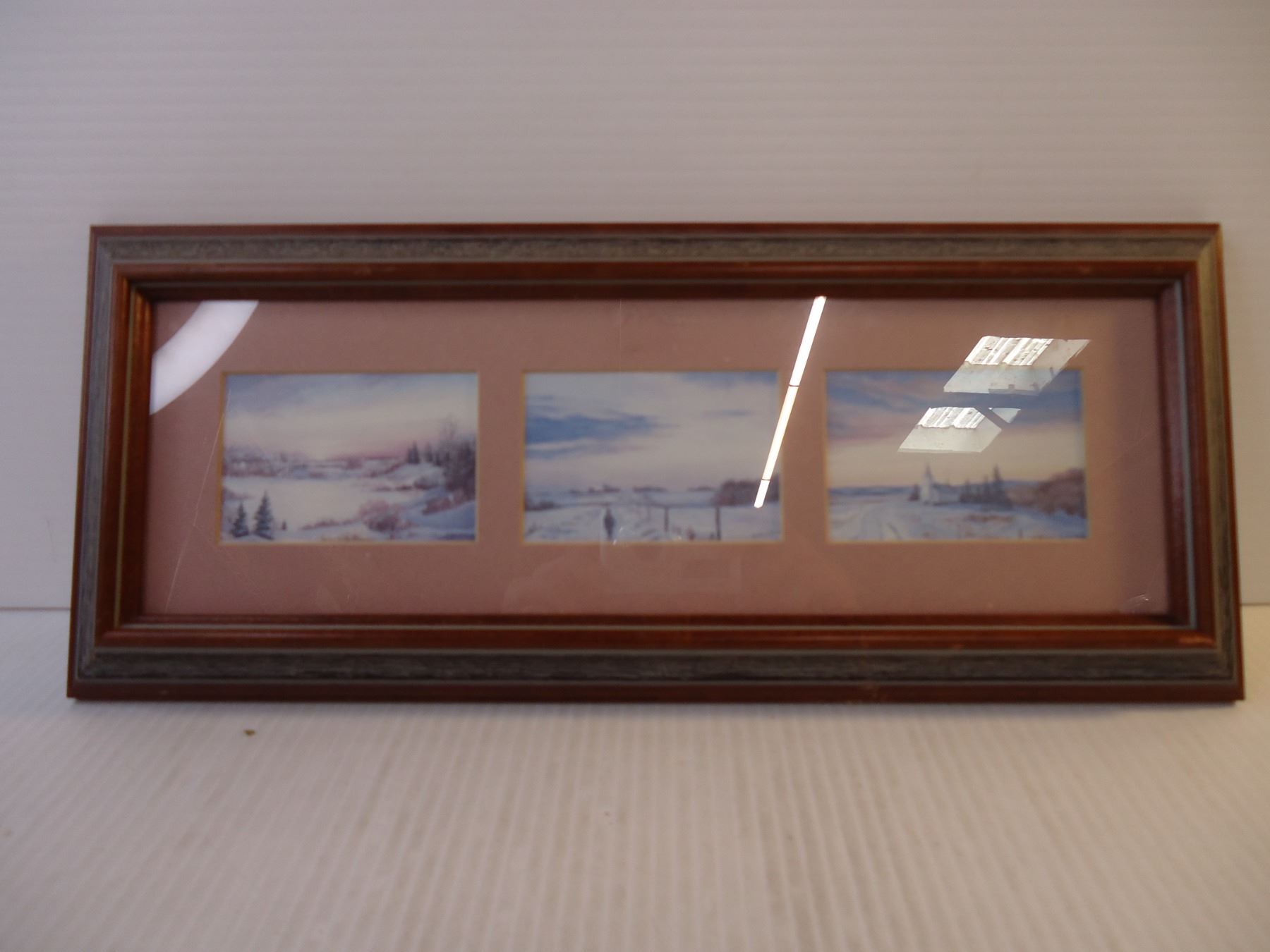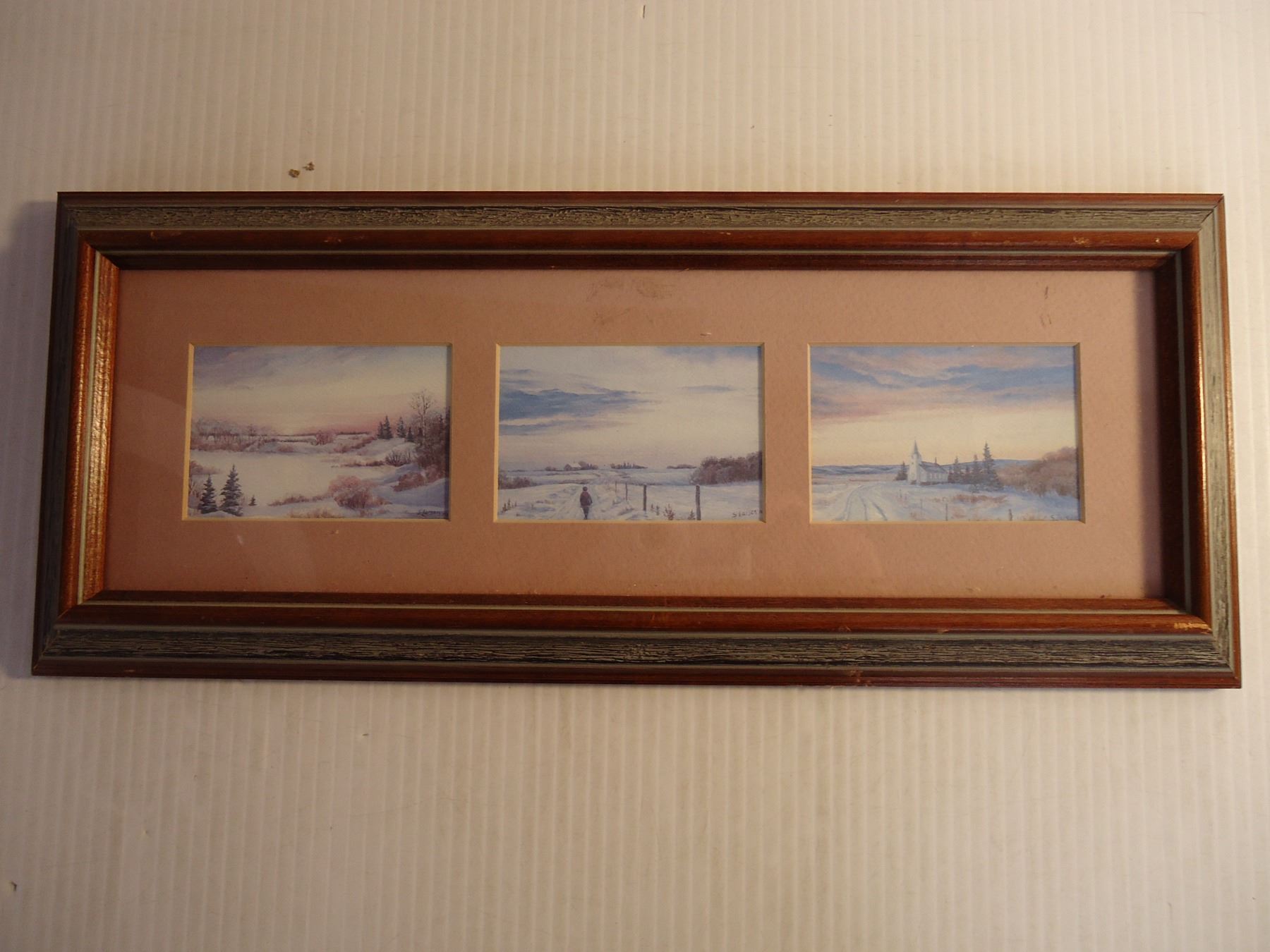 (3) Sharon Larson Oil on Canvas in One Frame-15.5" long and 6 " wide
