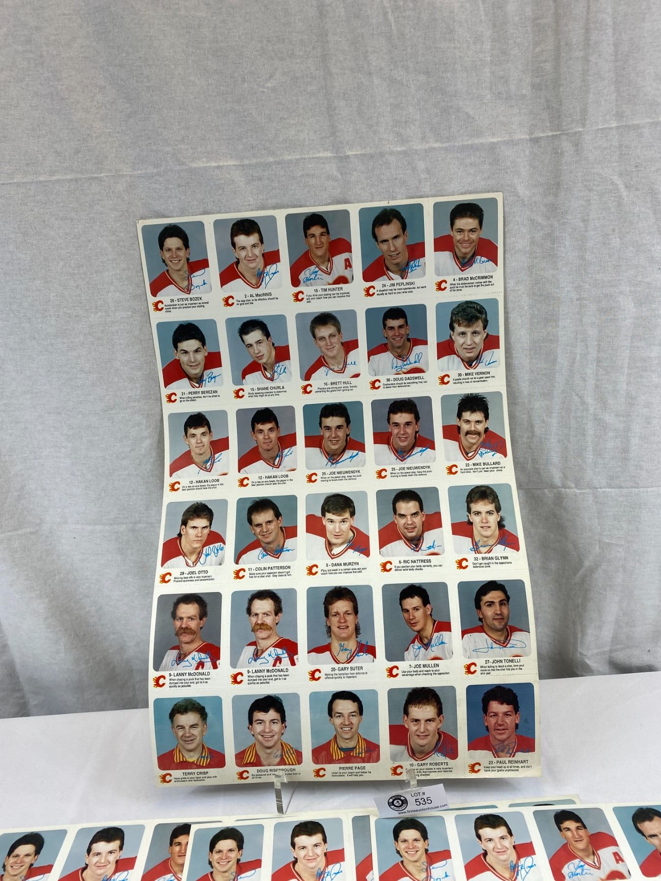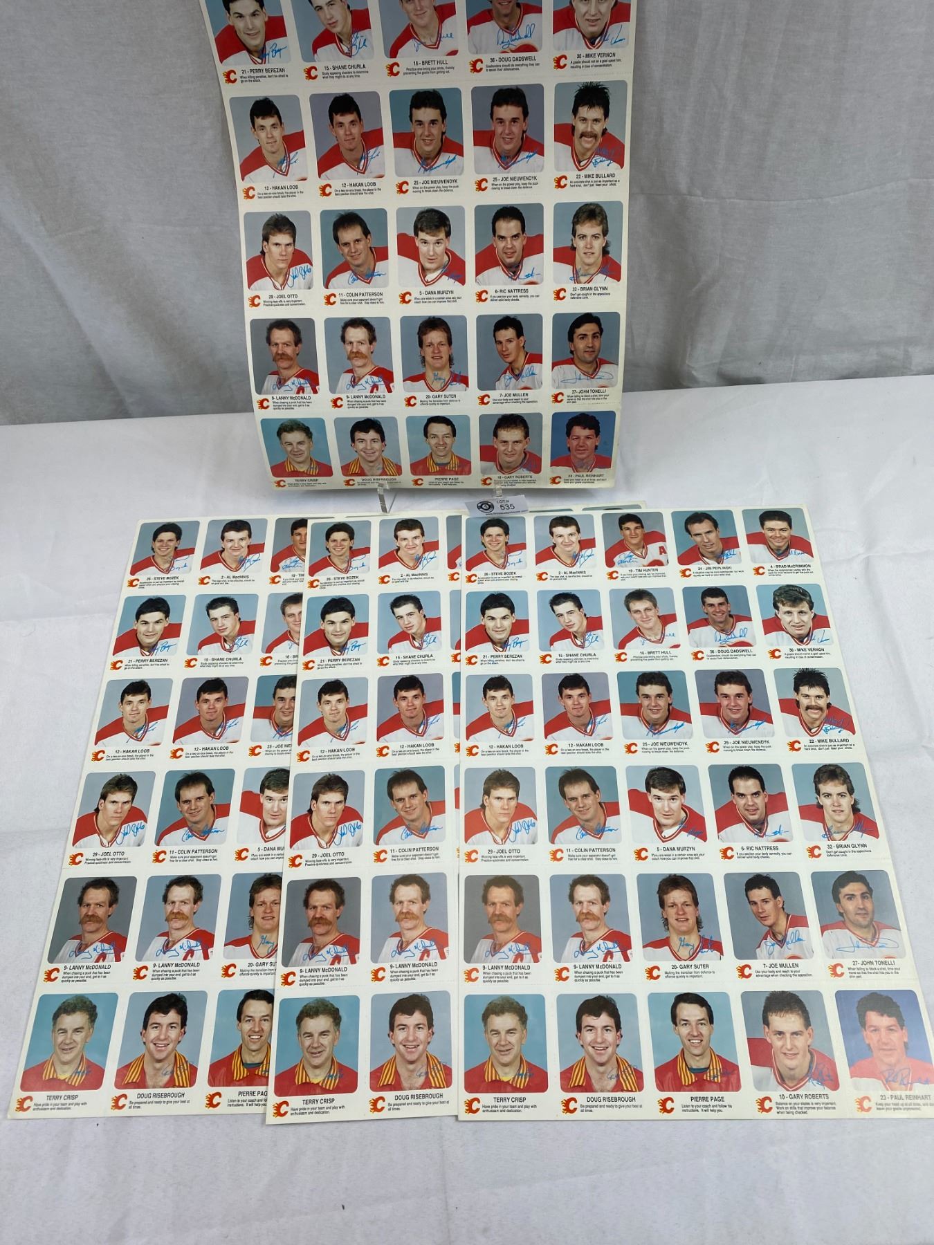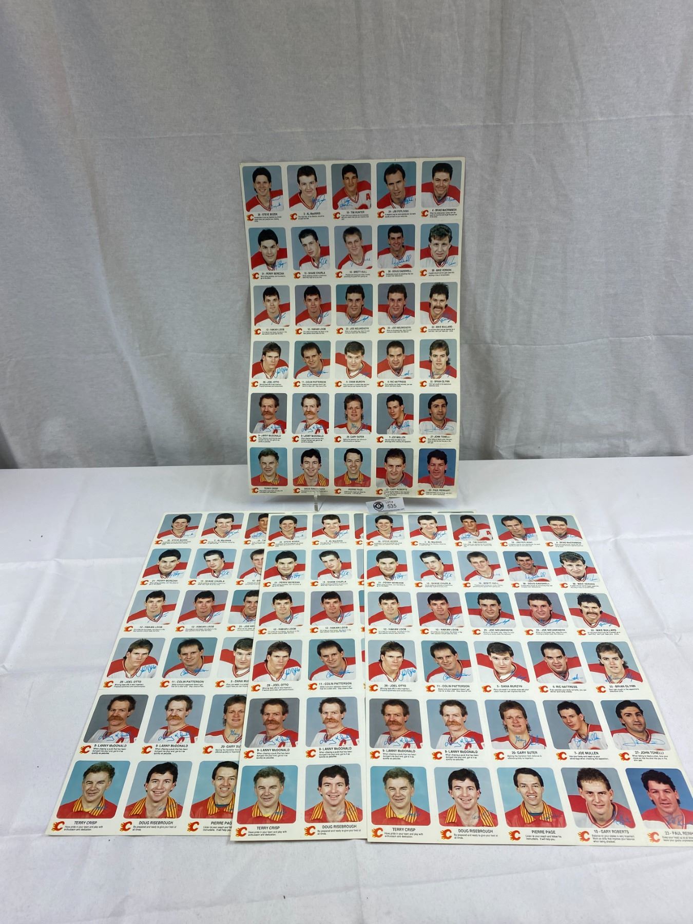 3 Sheets Of 30 Calgary Flames Trading Cards By Red Rooster Food Stores, 1987