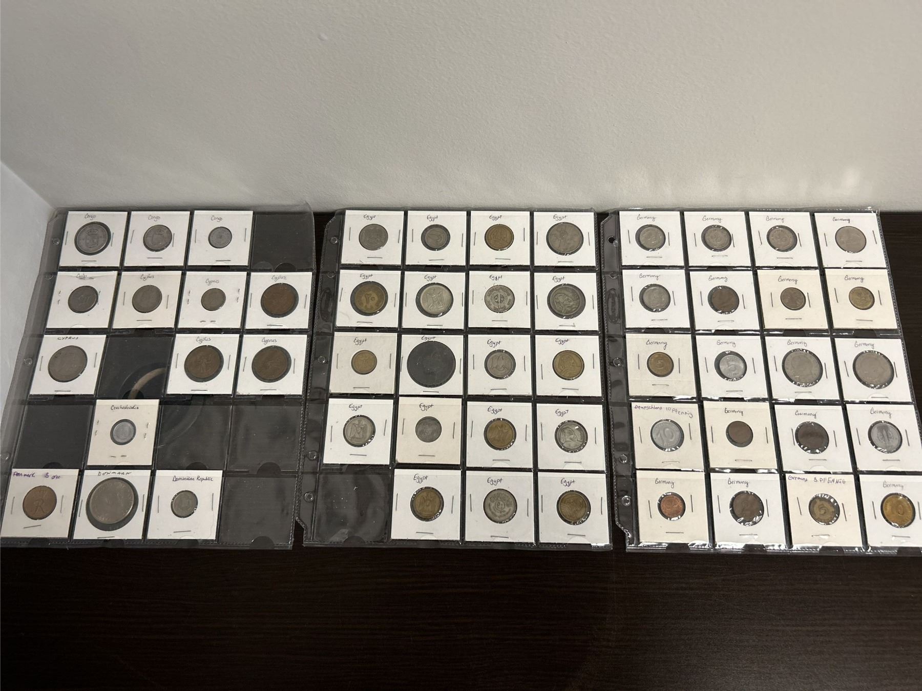 3 Sheets of Foreign Coins