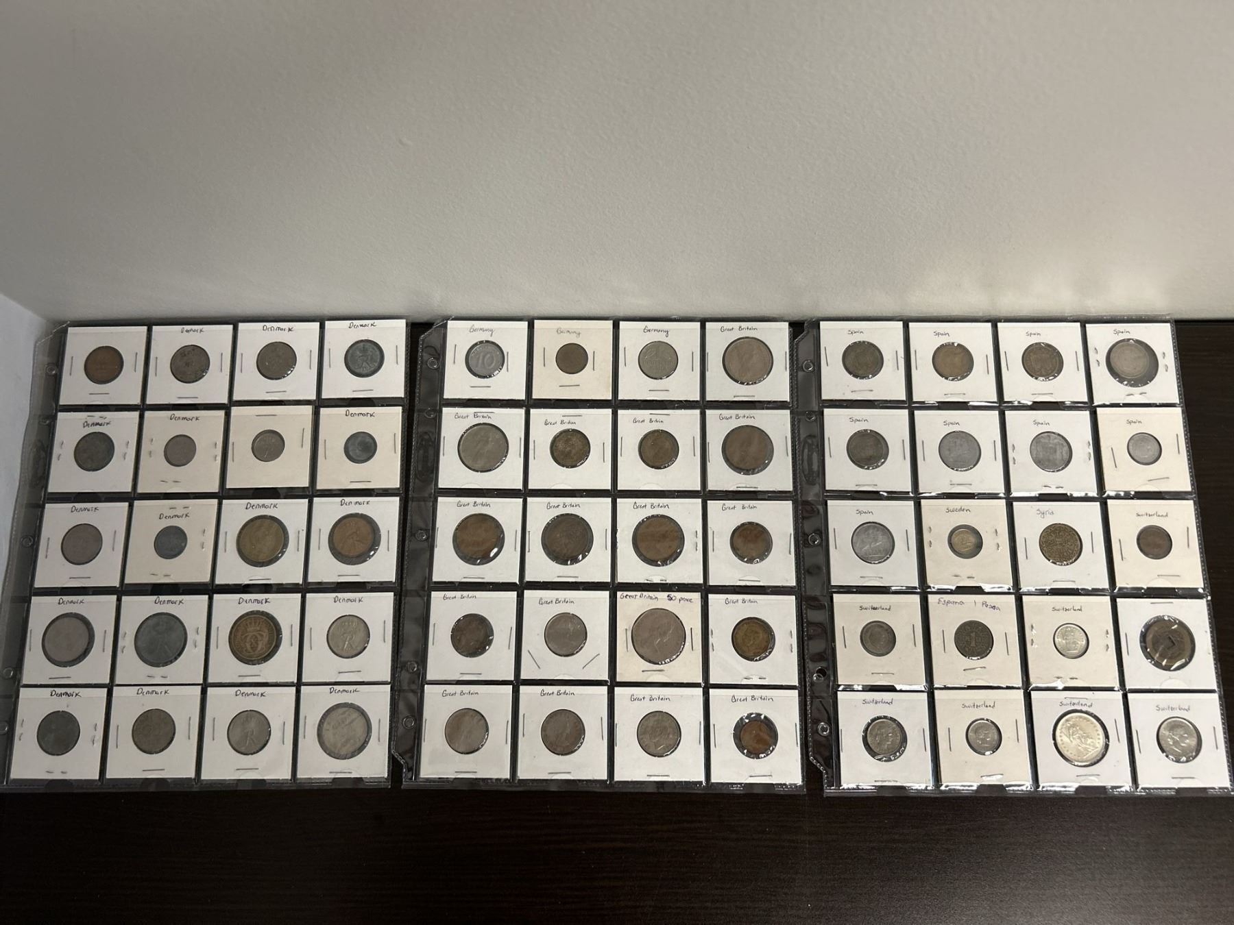 3 Sheets of Foreign Coins