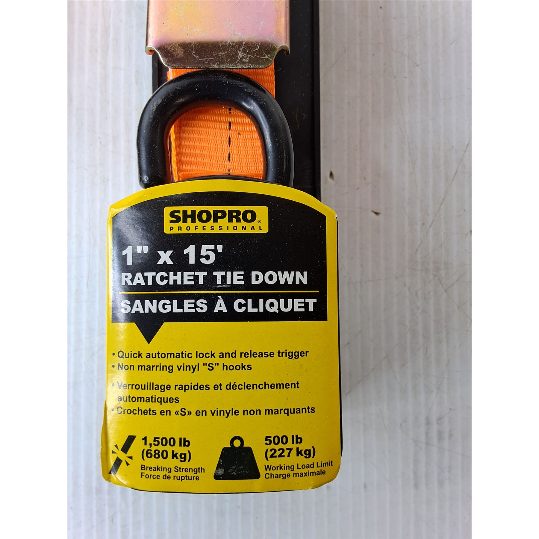(3) Shop Pro 1" x 15 Ft. Ratcheting Tie Downs, NIB