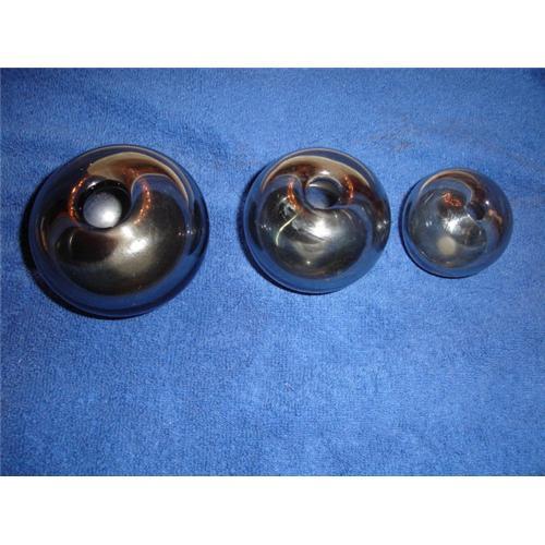 This is a beautiful set of 3 Per Lutken Smokey Round Vases. They are signed and dated. The largest is 3.5 inches tall and has a few scratches on the bottom. It is signed Holmegaard, 19 Symbol 57. The middle one is 3 inches tall, and is signed Holmegaard, 19 Symbol 56. The smallest one is 2.5 inches tall, the hole on the top is a little off center, and it is signed Holmegaard, 10 Symbol 56?