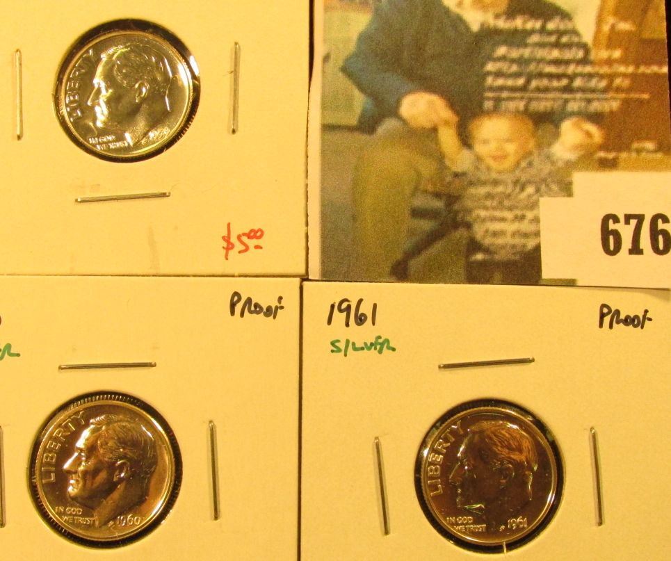 (3) Silver PROOF Roosevelt Dimes, 1959, 1960, 1961, group value $15