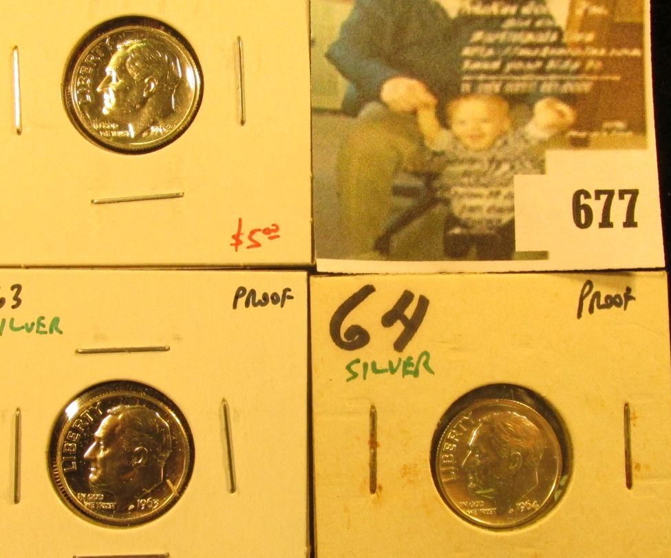 (3) Silver PROOF Roosevelt Dimes, 1962, 1963, 1964, group value $15