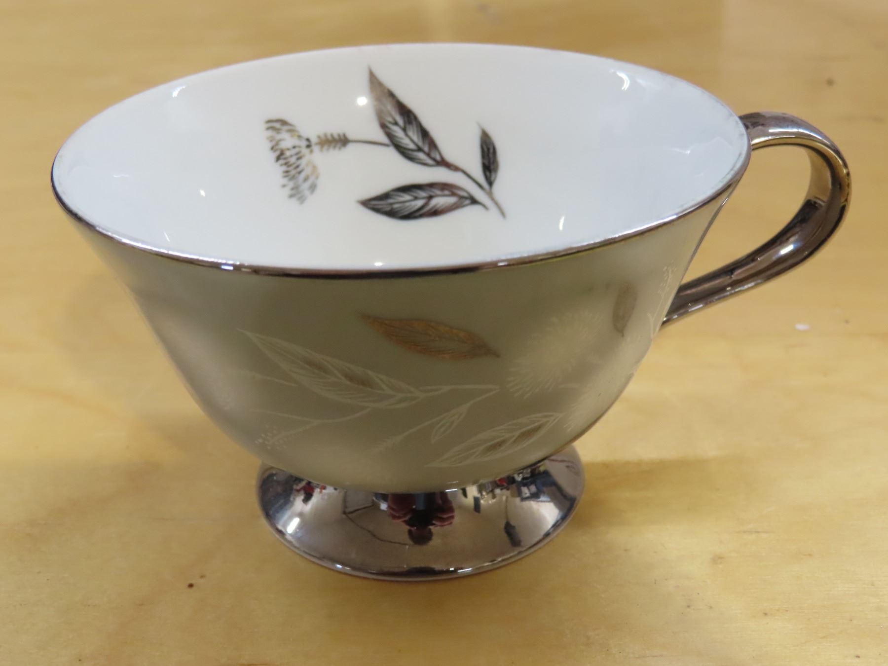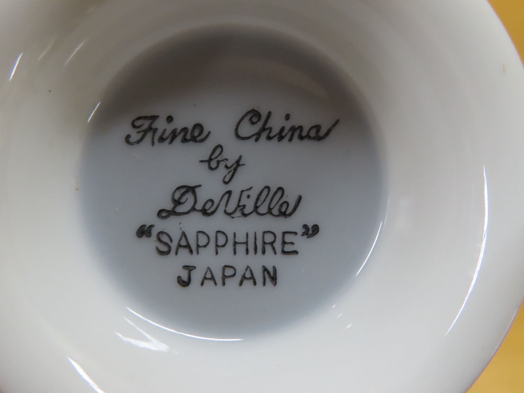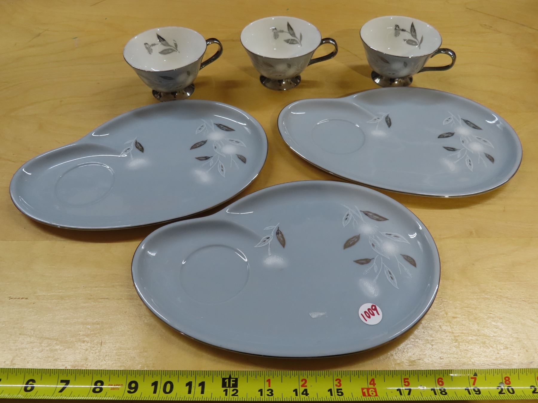 3 Silver Tea and Saucer sets "Sapphire" Fine China by Deville