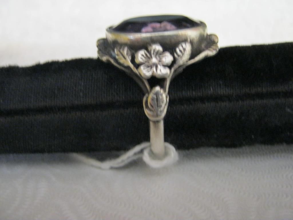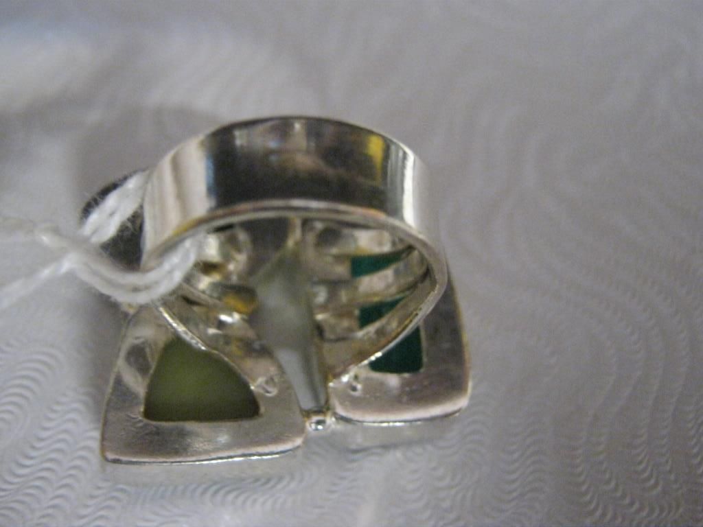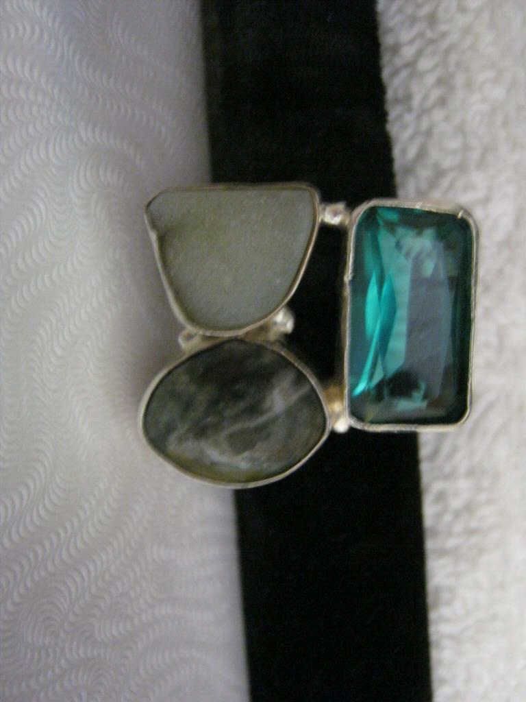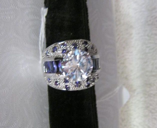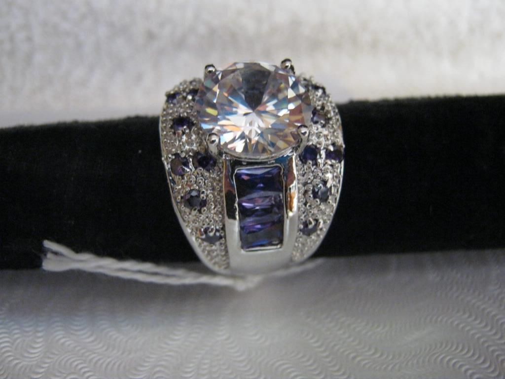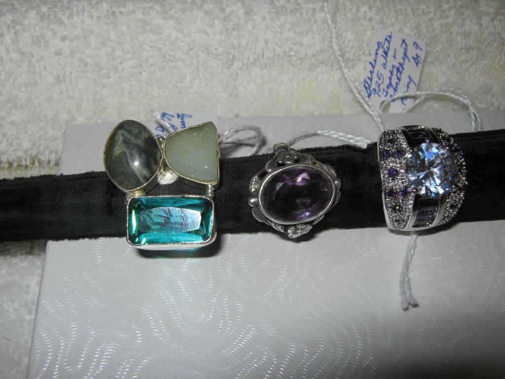 Sizes 6, 7, 9. 1- large stone Amyethus ina floral setting , 1- large CZ with amyethys cocktail ring , 1- green turquoise- moon stone & large topaz