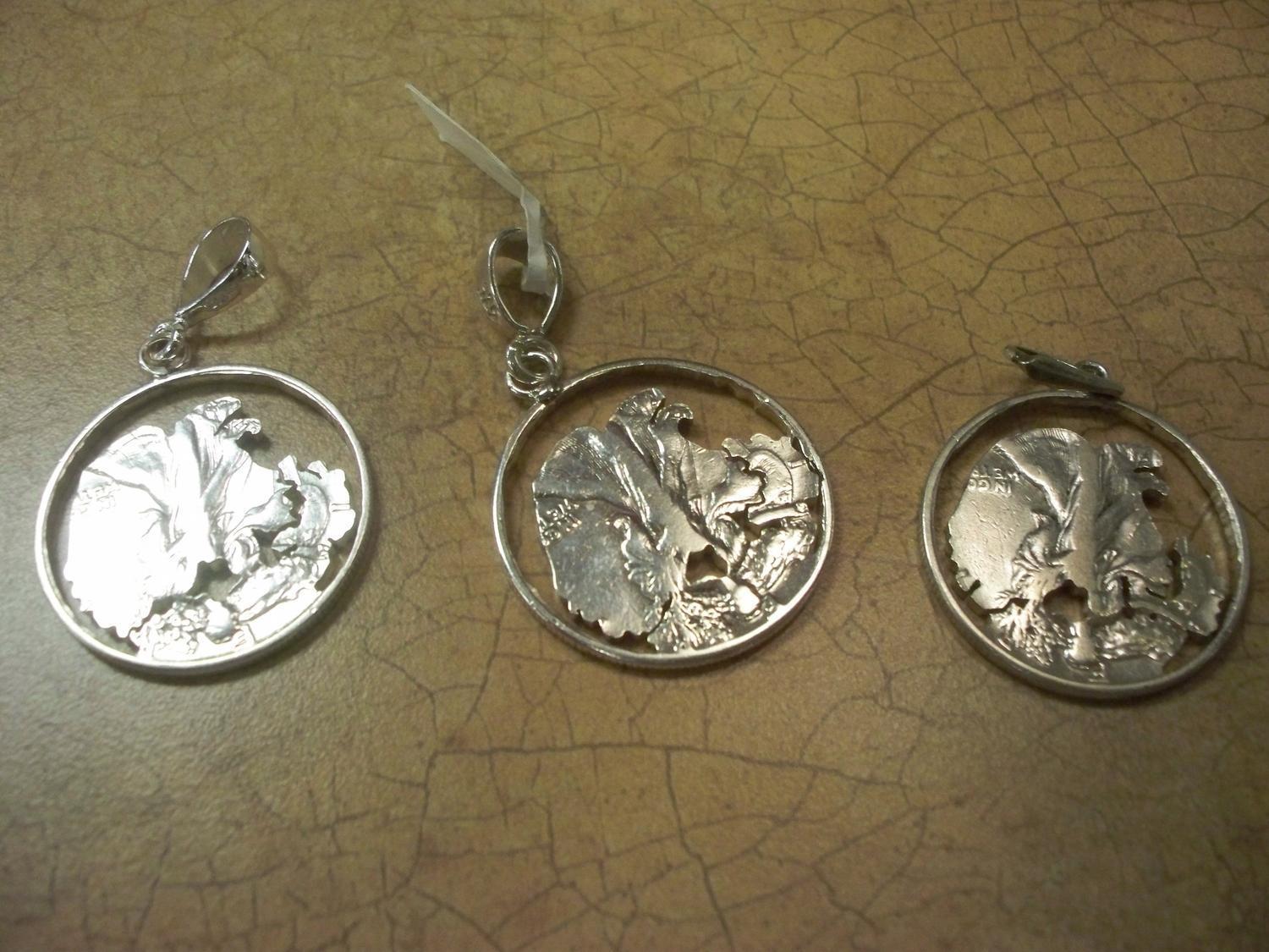 3 Silver Walking Half Dollar Pendants, Carved by a Silversmith