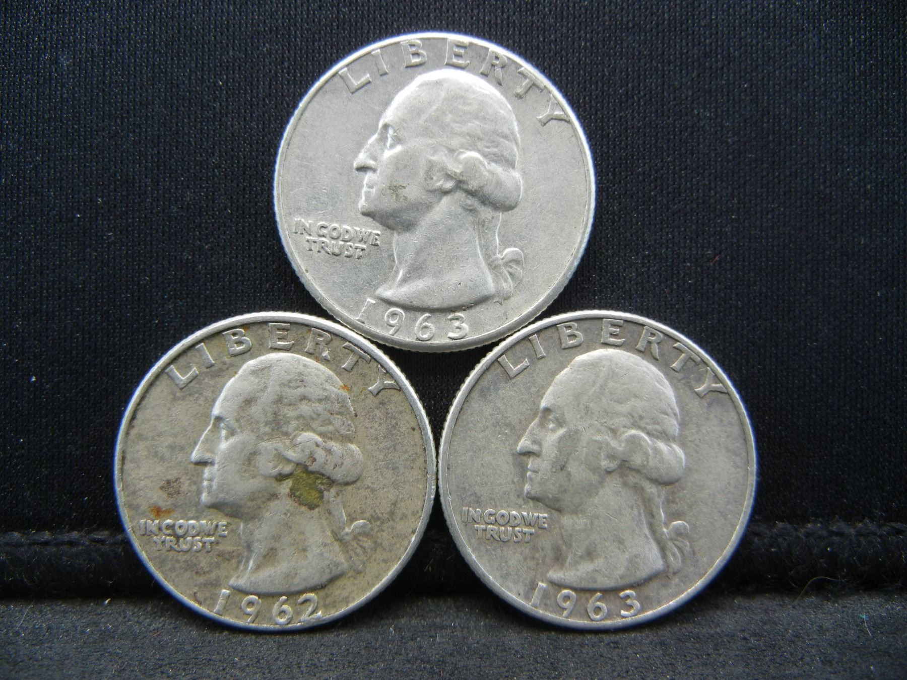 (3) Silver Washington Quarters (1) 1962 & (2) 1963-D