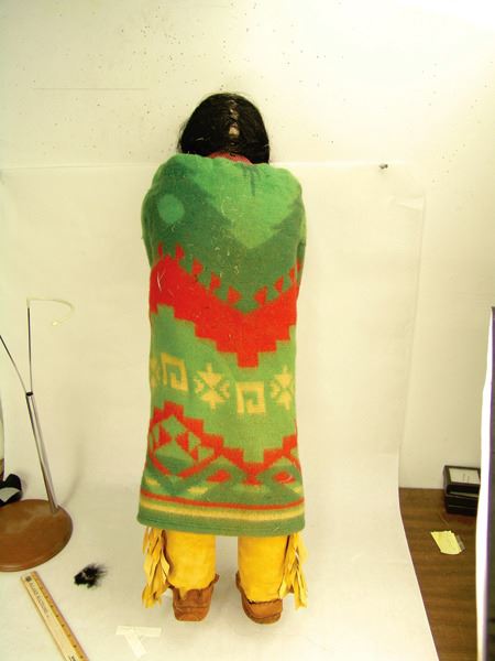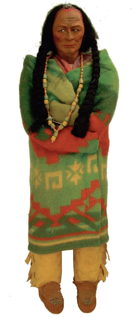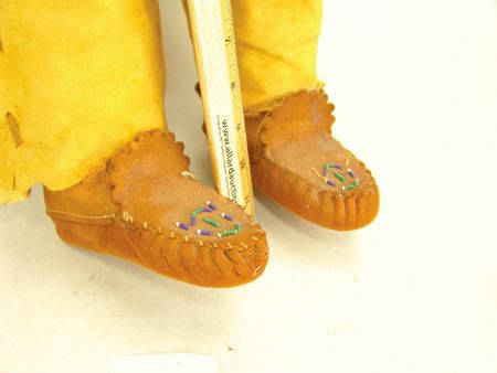 Early/Mid 1900s, Very rare fully clothed male doll with buckskin leggings and moccasins, robe, and wooden beads. These were the ones used for store displays in the early 1900s. Good condition. 36" tall