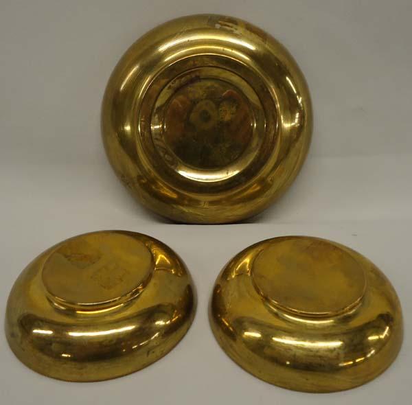 3 Brass Bowls w/Israeli Stamps Under Glass Surface. Largest bowl measures 4-1/8 diameter. Buyers Pay Actual Shipping and Handling Charges(see terms and conditions for more information).