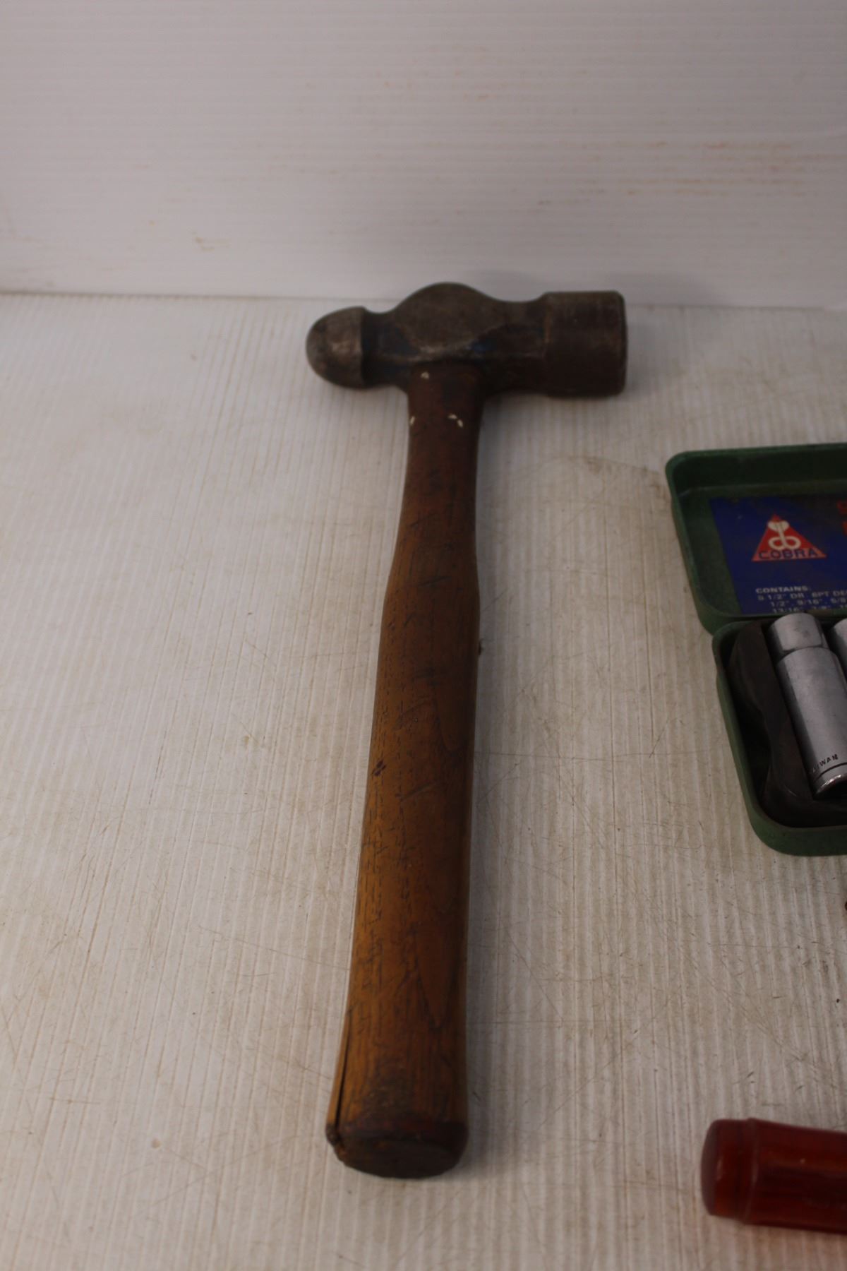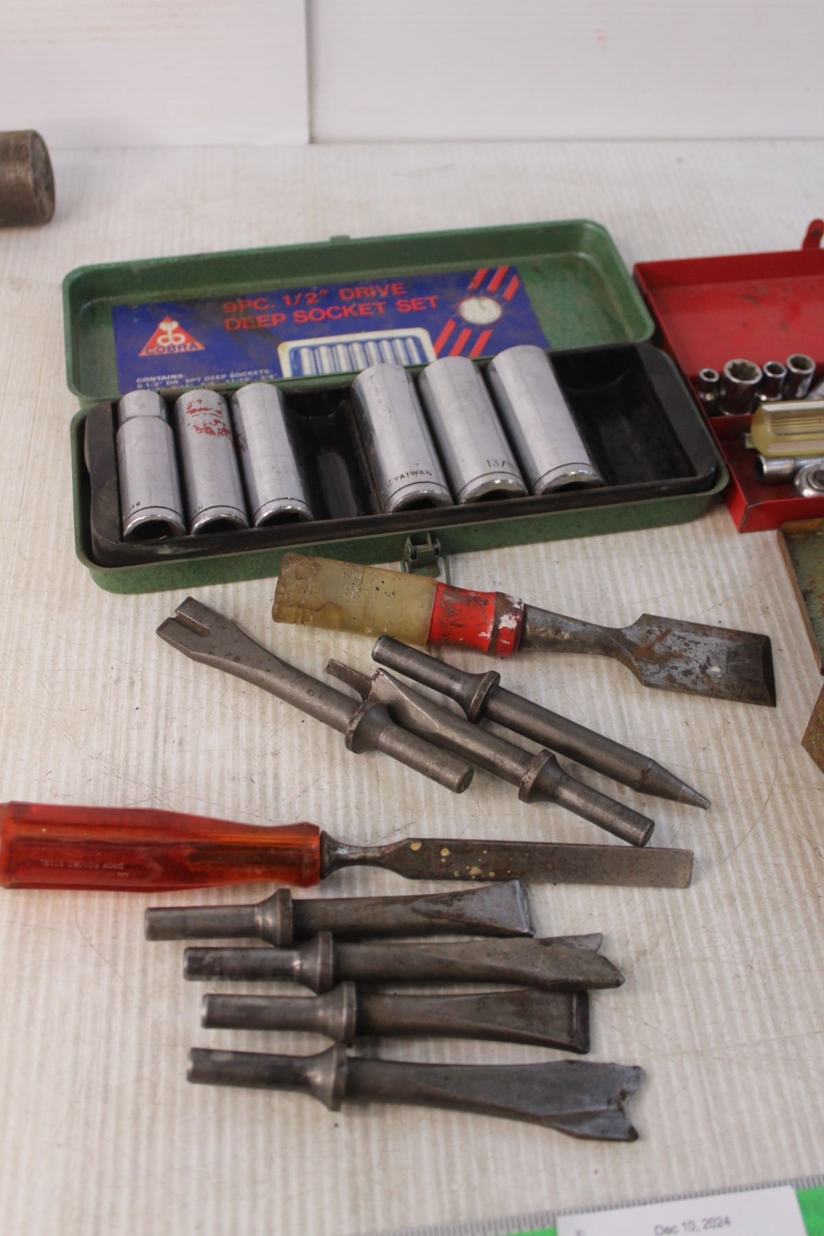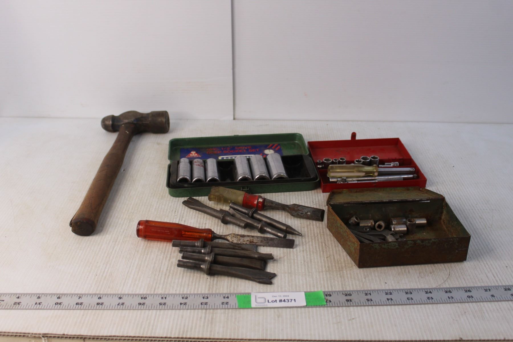 (3) Socket Sets, Ball Peen Hammer, Chisels- As Is