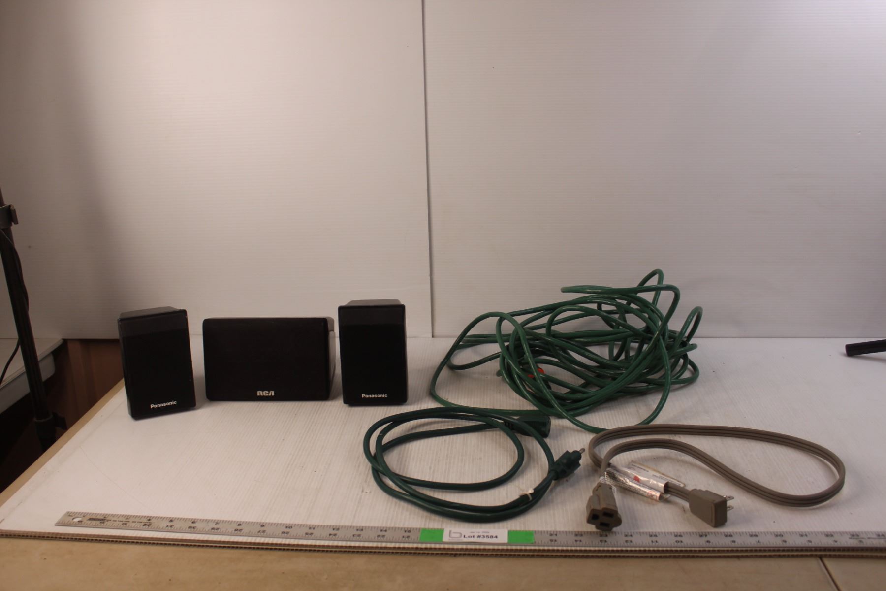 (3) Speakers- Panasonic, RCA, (3) Extension Cords, Varying Lengths