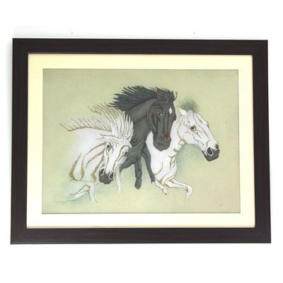 3 Stallion Heads Gemstone Painting w/ Frame **|**|** ; MSRP: $2100