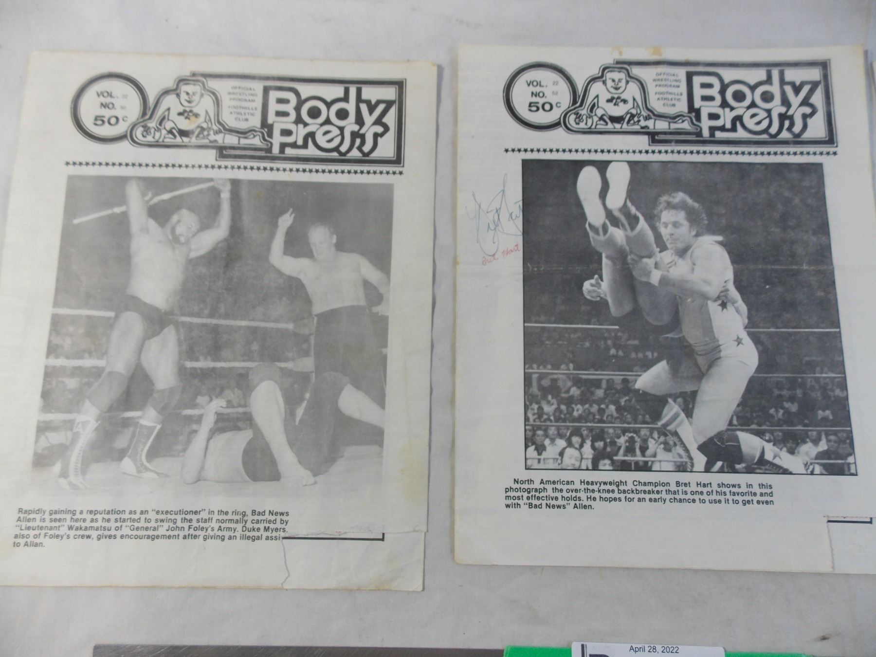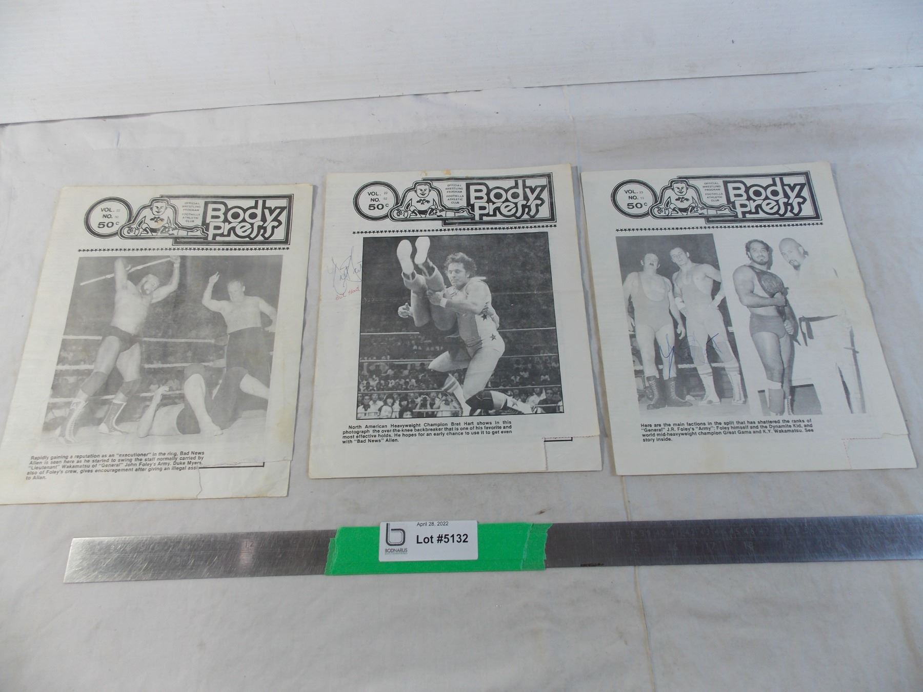 (3) Stampede Wrestling Programs "Body Press" - 1982 Saskatoon Arena - Bret Hart autographs