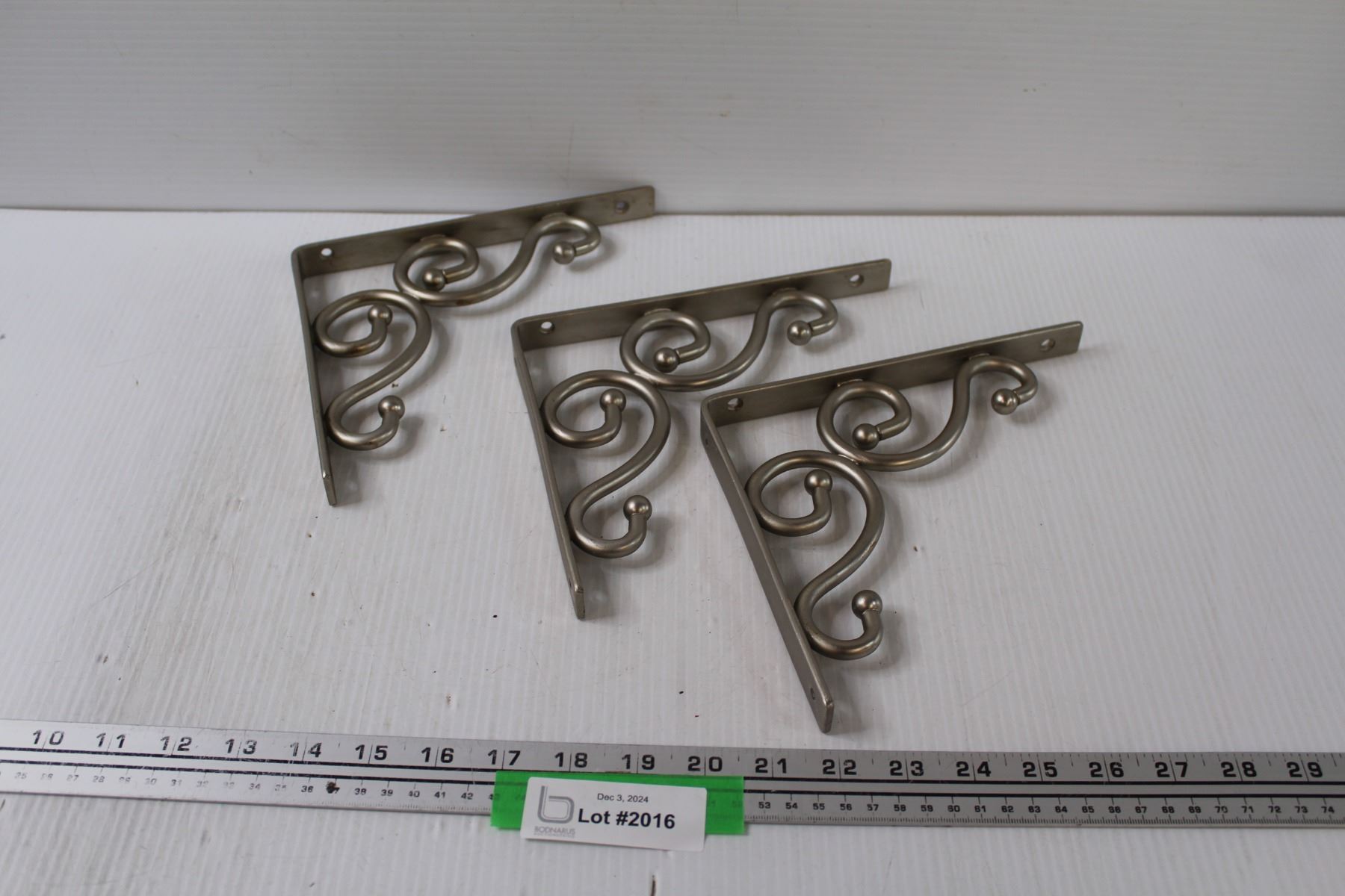 (3) Stanley Nickel Plated Metal Decorative Shelf Brackets - 7" x 8"
