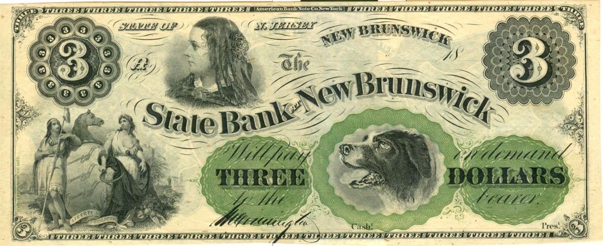 One $3 State Bank of New Brunswick New Jersey Undated Large Note.