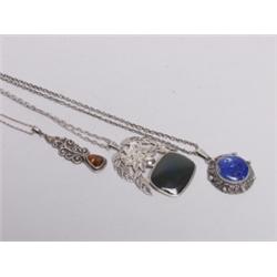 3 Sterling & Gemstone Pendant Necklaces All Handmade