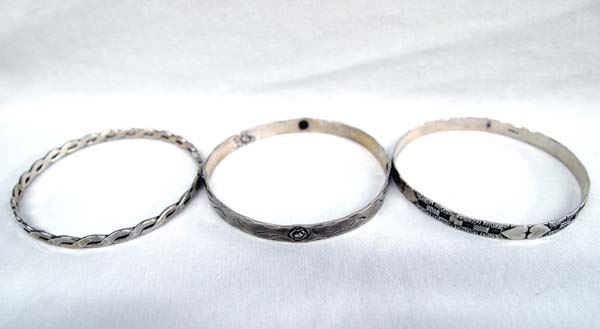 3 Sterling Silver Bangle Bracelets, largest measures 8.5''D, Two are stamped sterling and the other is hallmarked and stamped sterling, #2 36.85g in total wt.